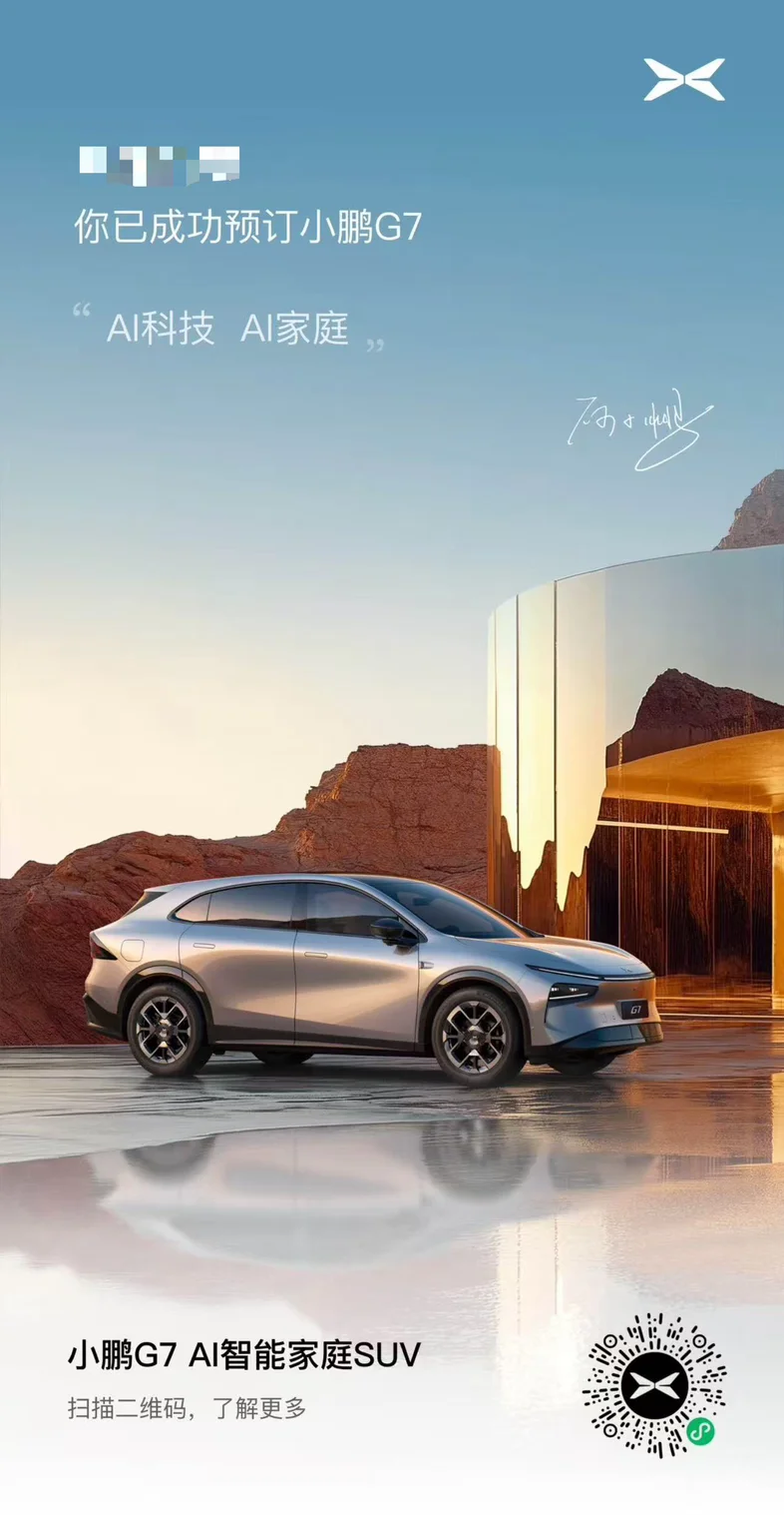 #小鹏G7开启预订# 家里刚好还缺一辆家庭轿车。作为家庭用户,小鹏G7最打动我的是它"智能+舒适"的完美结合。超2000TOPS算力保障未来5年智驾不落伍,华为AR-HUD让导航像游戏一样直观;3米轴距+零压座椅,老人孩子长途乘坐也不累;更重要的是,30万级的价格却配齐了百万豪车的智能配置。现在订车还能享受终身免费充电等权益,这样的高性价比智能SUV,正是家庭升级出行的最优选!