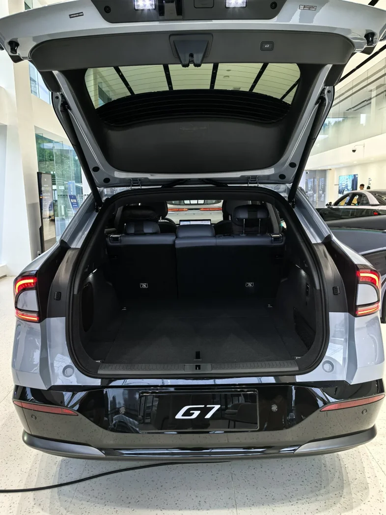 小鹏G7的空间真的是太完美了,座进去的感受非常震撼 超级大的得房率,配备全景天窗,视野非常开阔。