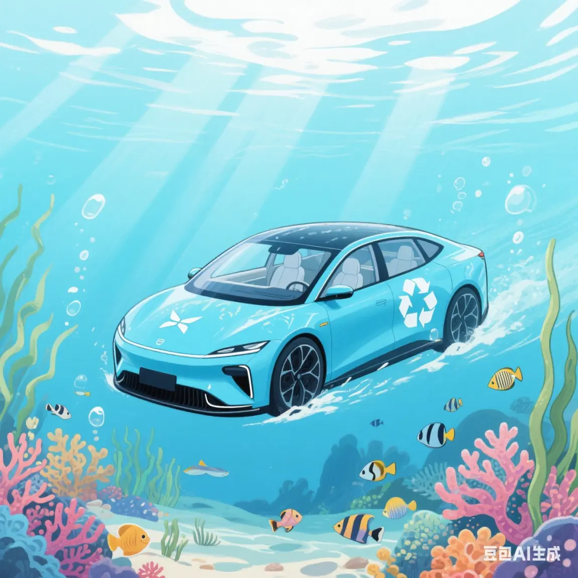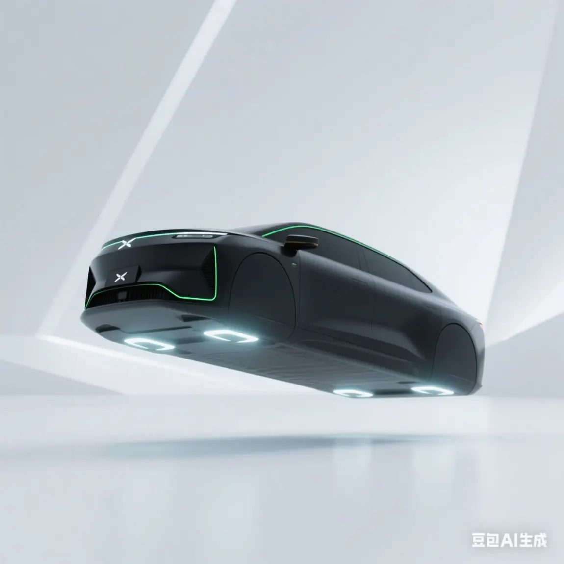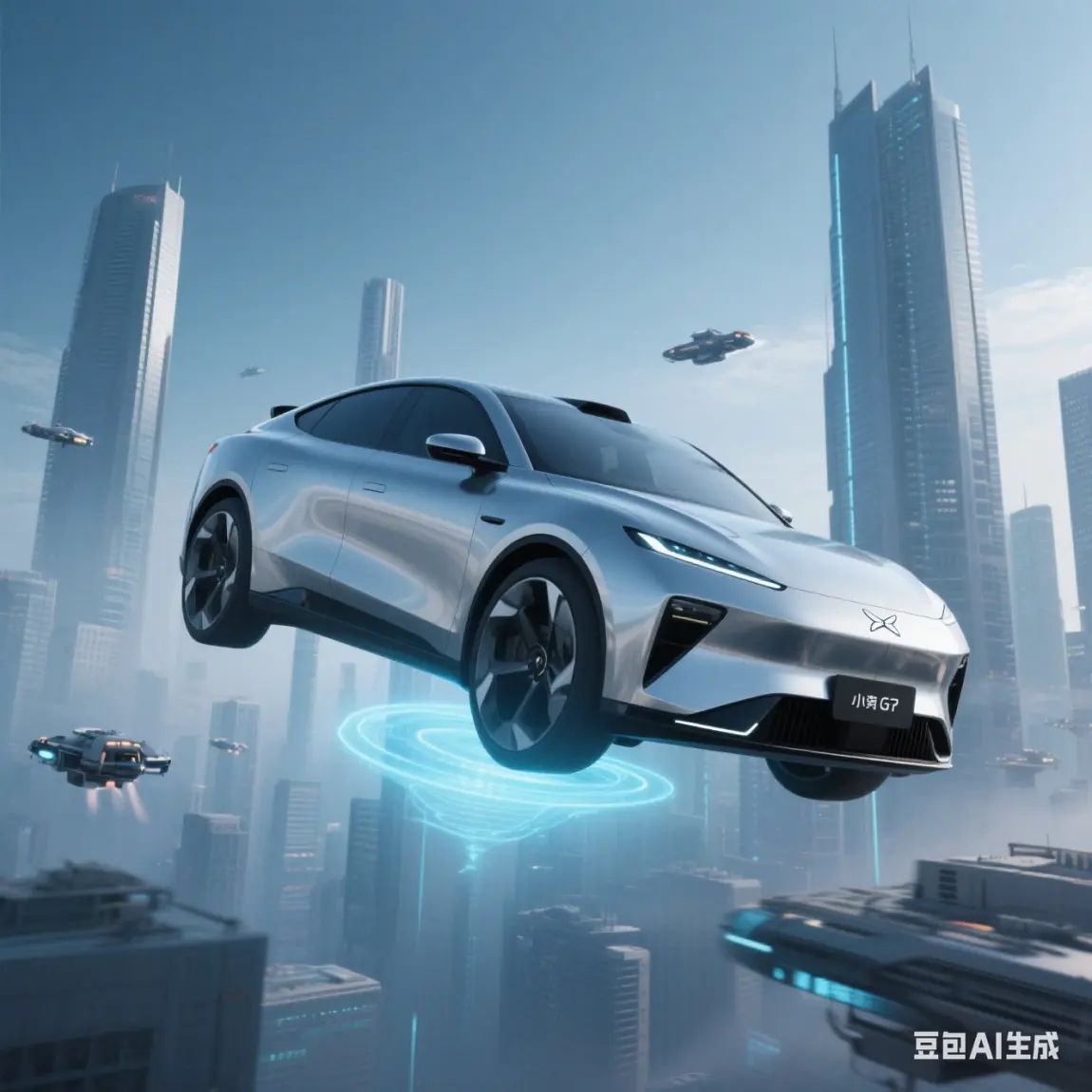 帮我生成图片:帮我以小鹏G7为原型画一幅未来汽车的画,可以悬浮行驶或者水下出行,低碳环保。比例 1:1。