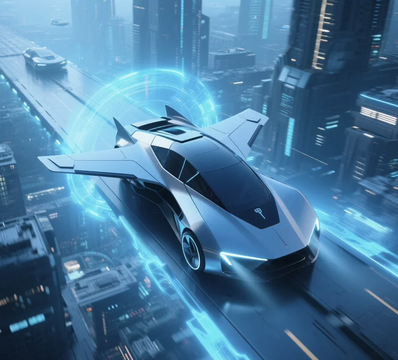 #我的科幻座驾# 风格上采用科幻写实风,突出科技感和未来感。画面主体是造型独特、充满想象力的未来汽车,它们行驶在未来城市的街道或空中航道上。色彩以冷色调为主,搭配明亮的灯光效果,营造出神秘而炫酷的氛围。构图上注重展示汽车的全貌和独特设计,同时展现出未来城市的繁华景象。
