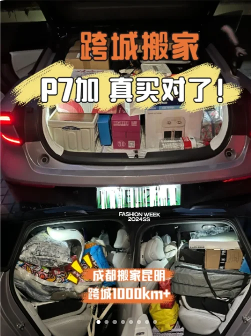 小鹏P7+凭借其超大的内部空间和灵活的装载能力,确实堪比“货拉拉”,尤其在搬家场景中表现突出。其后备箱容量高达725L,且在后排座椅放倒后,储物空间可扩展至2221L,轻松容纳33个20寸行李箱。这种装载能力不仅超越了同级竞品,甚至媲美SUV。此外,P7+采用A柱前移、C柱后移的设计,使得乘员舱空间更加宽敞,得房率高达88%,前排腿部空间为956mm,后排腿部空间为994mm,膝部空间达到157mm。这些设计使得P7+在家庭用户中极具吸引力,成为“搬家神器。#小鹏汽车#