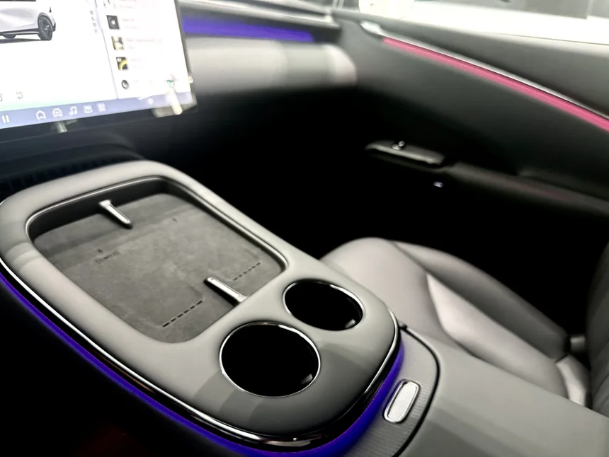 细节之处更见巧思:磁吸式可折叠小桌板满足临时办公或用餐需求;中岛开放式磁吸储物区适配手机、钥匙等随身物品;可水洗前备箱解决清洁难题;四门扶手专属手机槽避免物品滑落。这些创新设计以低成本实现功能拓展,既提升实用性,又展现出对用户使用场景的深度洞察。