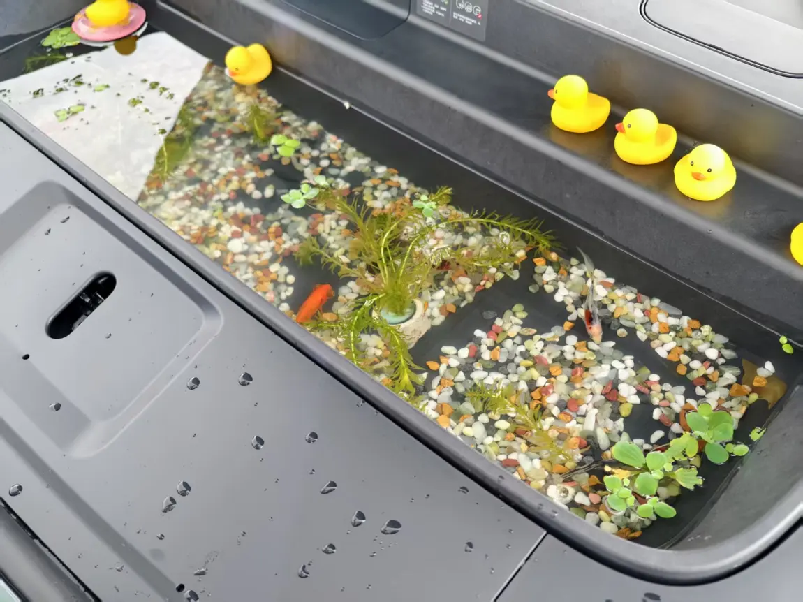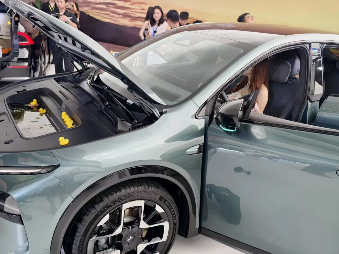 前备箱中央设有大型排水口,支持干湿分离。一位鹏友亲眼目睹销售演示后感慨:“这设计对爱钓鱼的车主太友好了,湿漉漉的装备直接丢进去也不怕!”甚至有人当场测试容量,把手机摆满整个前备箱数数量。