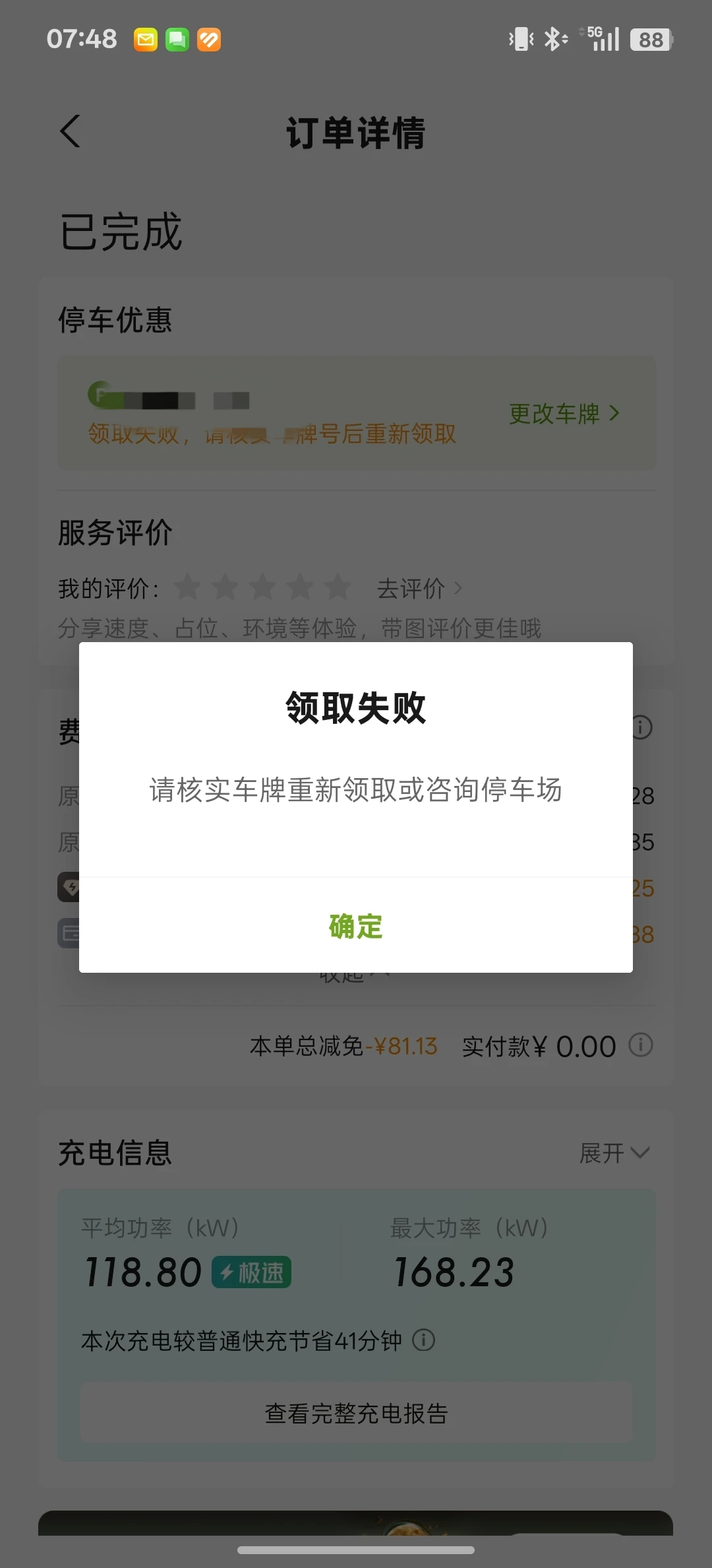就是一般的小鹏快充,没有s4快充。功率数也能接受。41分钟从7%充到了90%。但是居然出现了领取停车券失败的情况,不知道什么情况,反正尝试几次重新领取都失败了,好在那个杆子是开的,反正最后也没要我停车钱。