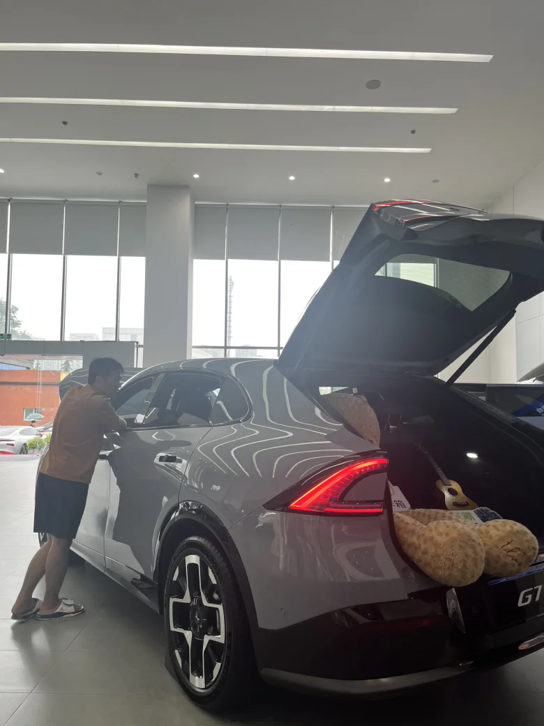 #小鹏G7展车已到店#小鹏G7的出现让人眼前一亮我是2021年接触的小鹏汽车,当时还是一个新兴品牌。今天有机会在店里试坐了一下,有高档氛围灯,芯片高级而且配置了抬头显示。整体偏运动和舒适,20寸大轮毂,后排带还有餐板。令我惊喜的是他的后背厢空间非常大,下面打开还可以放,而且不同于我那个轿车的后背厢,每次我放咖啡机都需要用一个柜子垫着,这个可以平放放一个咖啡机和磨豆机,高度非常合理,而且空间都绰绰有余,不需要额外定制柜子了,非常方便,以后出门旅行和露营都挺适合。