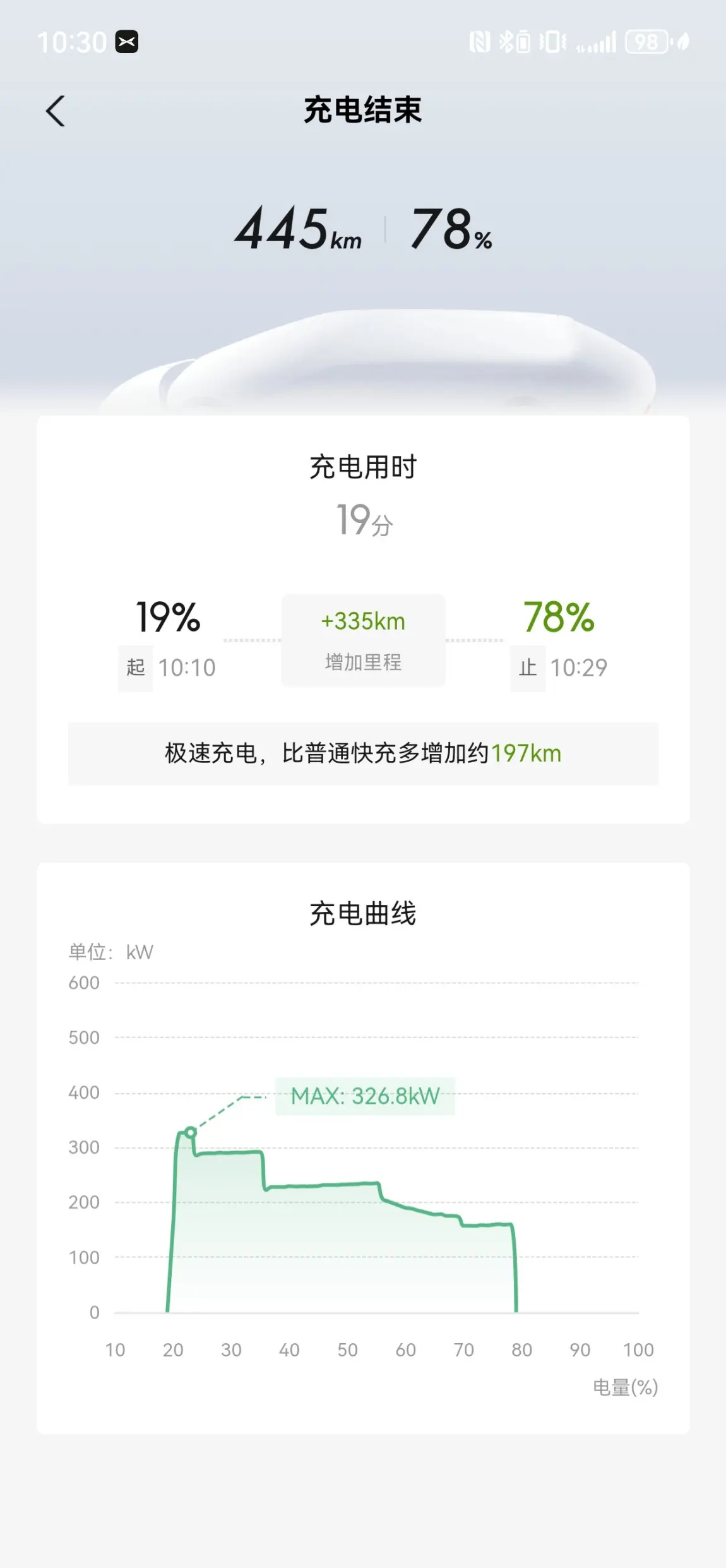 电量90%在市区跑了400公里无压力,WLTP还剩余110公里,在小鹏4S超充桩从19%-78%电量用了20分钟,能缩短到12-15分钟内最好了。最大充电功率能保持到50%才降速就非常满意。