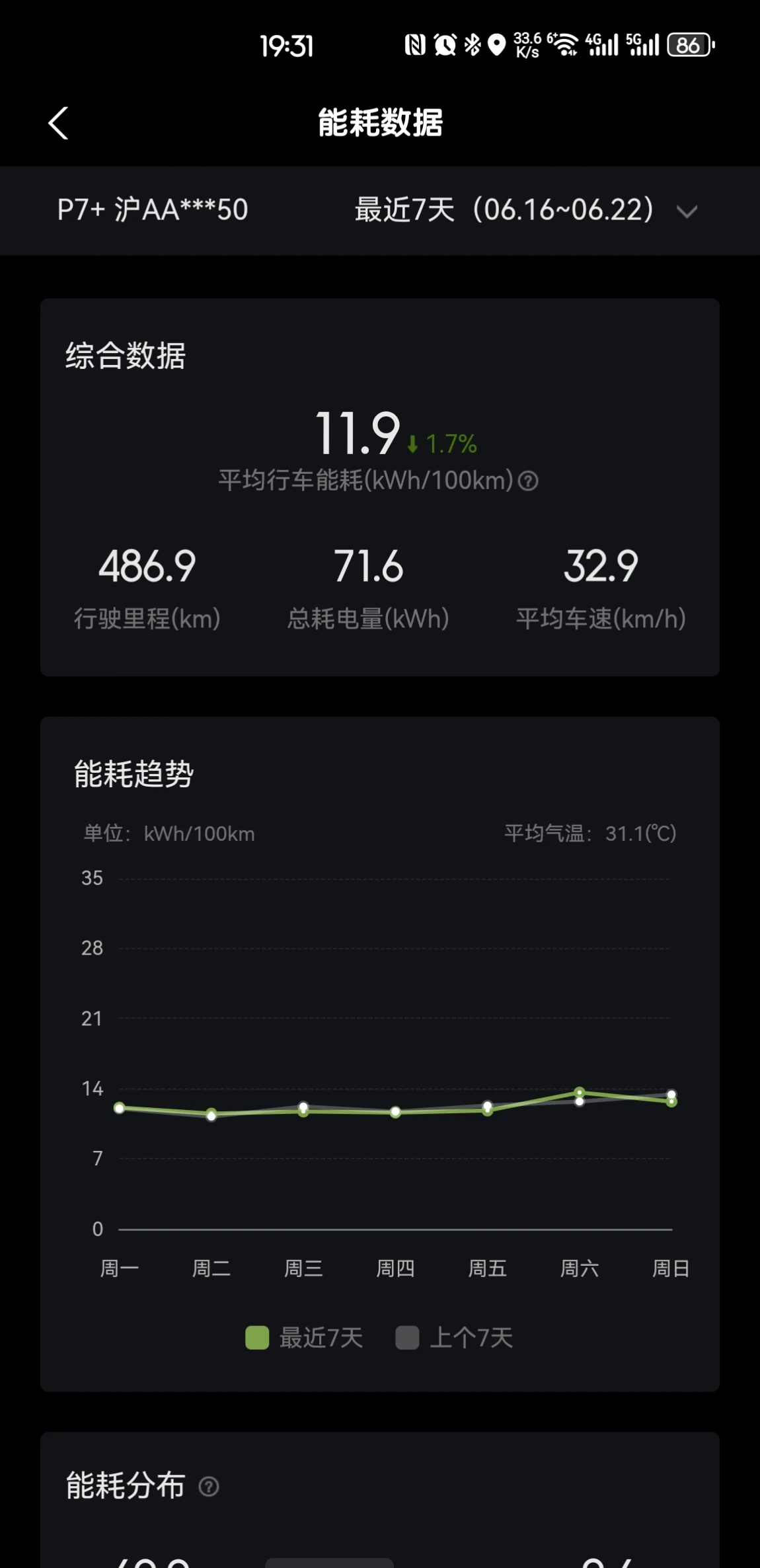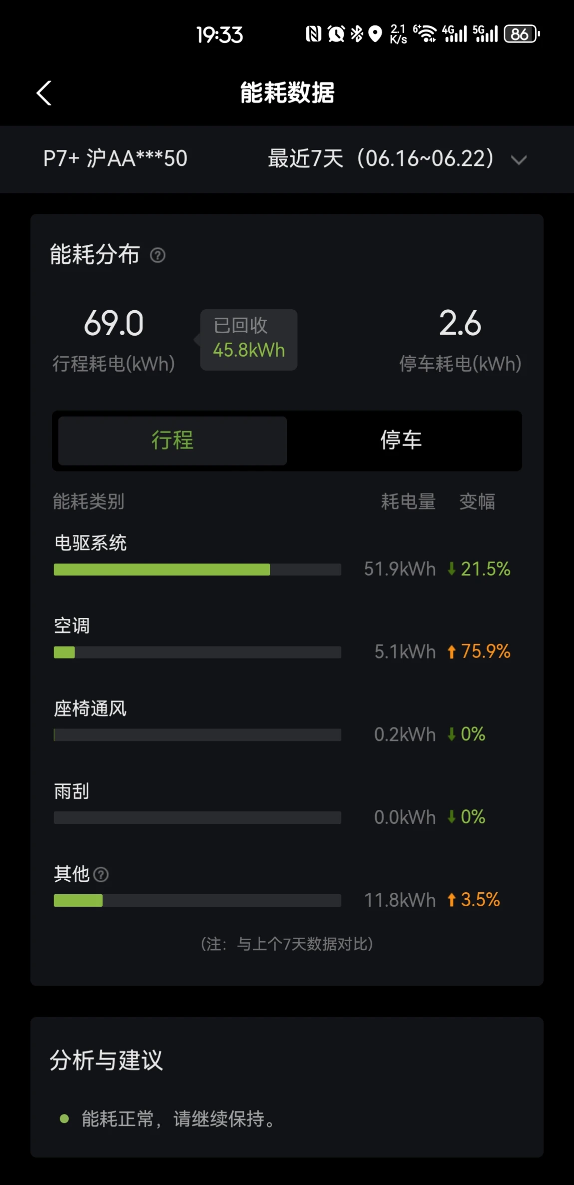 每周能耗打卡,70度电没跑到500其实挺一般的,但是平均能耗又不到12,难道这是快乐表吗😂
