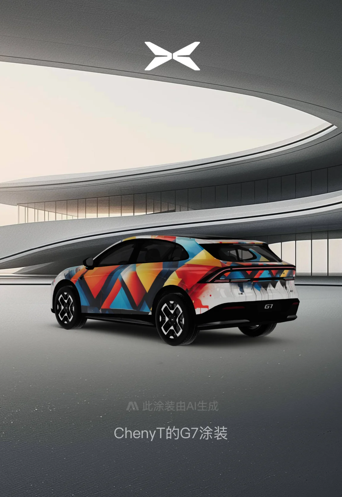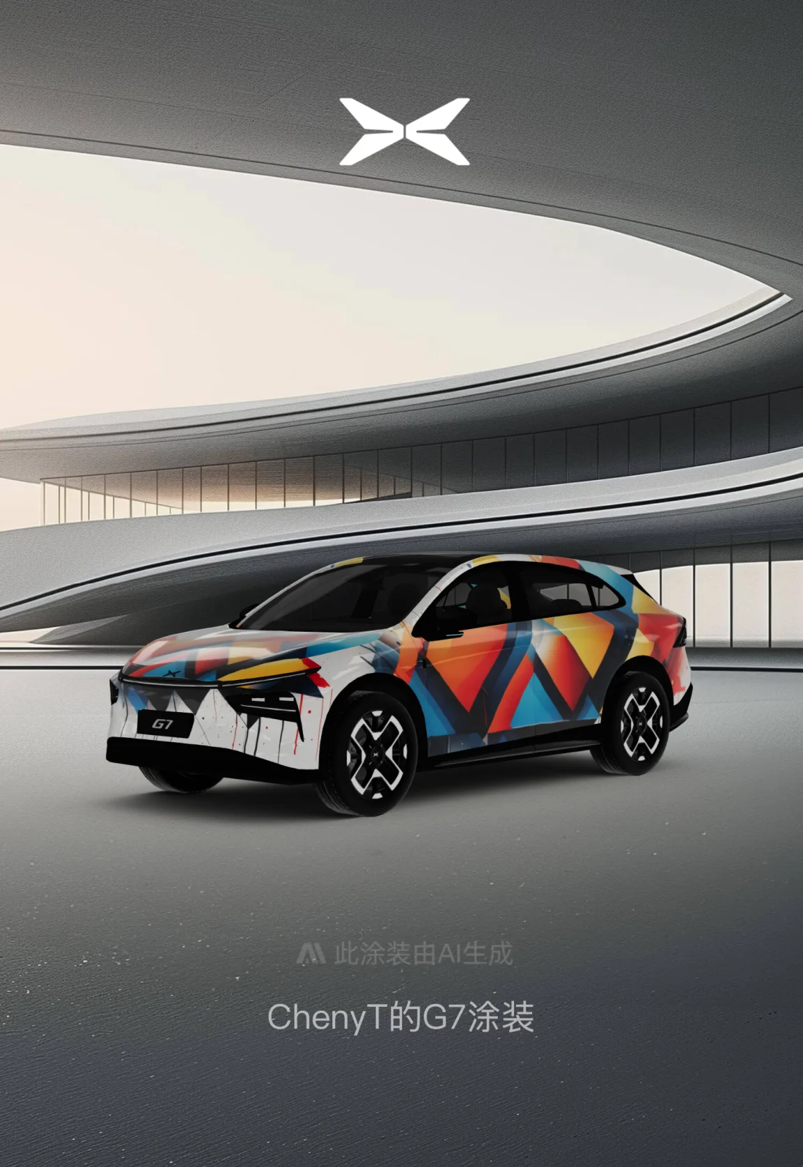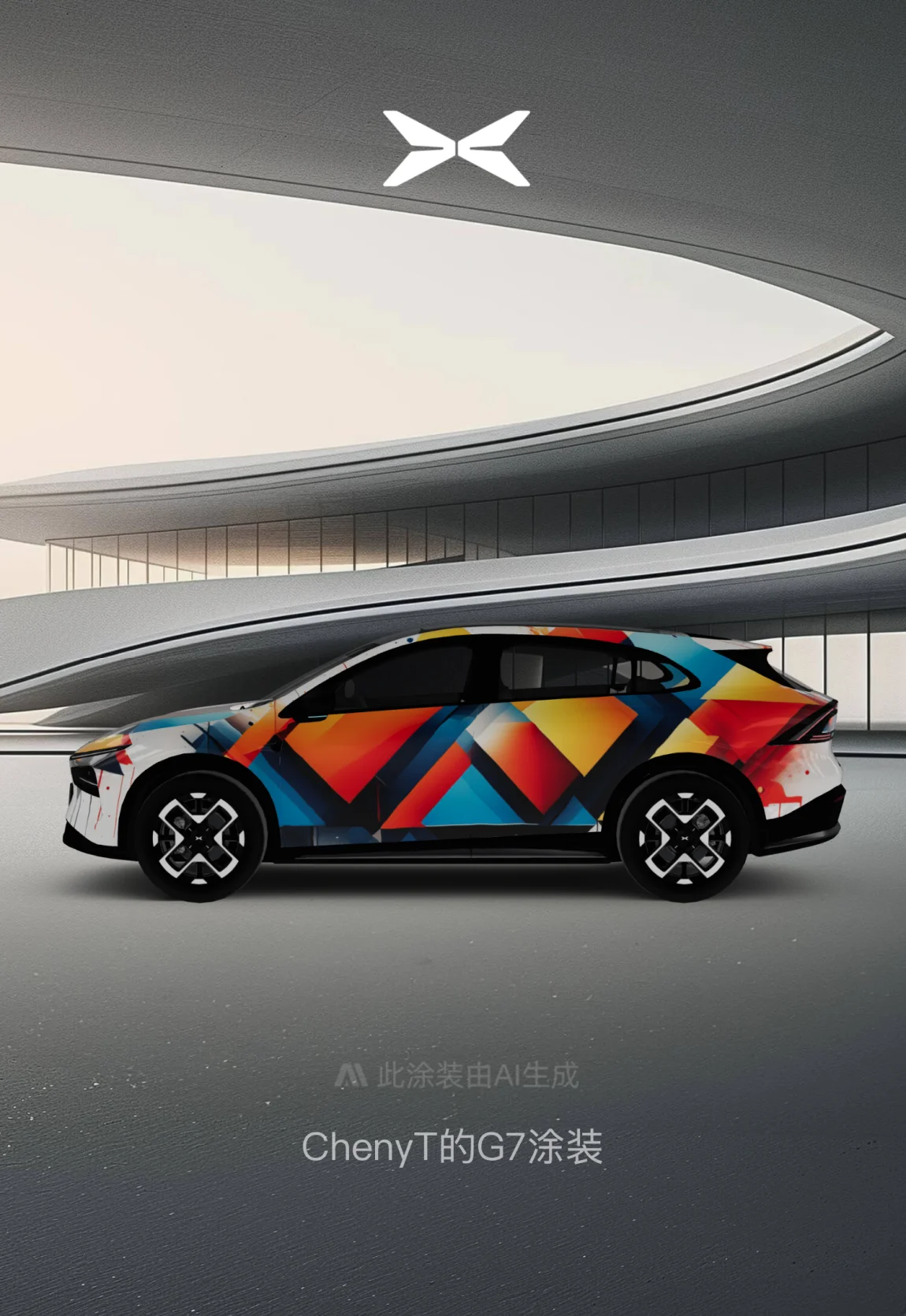我给G7创作了新涂装,快来围观!#涂装大师创意挑战# #G7涂装#侧面和尾部更饱满。描述线条融入"星际浪漫"元素,未来感强。提到车尾线条、尾窗和尾灯组的设计,尾窗面积加大。线条修长流畅,侧面姿态有运动感。分析侧面采用非溜背设计,Z形曲线和悬浮车顶,还有短前悬设计提升空间和操控。提到侧面空气动力学提升,溜背造型实用且美观。提到侧面线条流畅,隐藏门把手和X造型轮毂,风阻低。所以配上几何涂装让整体车型看上去更有科技感。