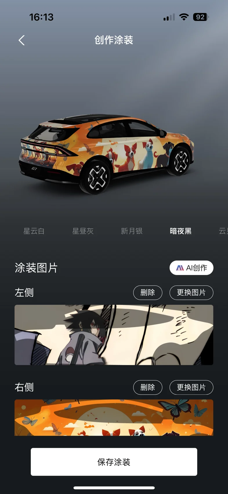 #小鹏G7涂装大师创意挑战# 小鹏G7突破传统车身比例,为小狗涂装提供绝佳画布。可将萌趣柴犬笑脸铺满车身,搭配爪印状镭射光斑,阳光下如跳动的宠物脚印;或用柯基短腿造型勾勒车门,搭配渐变毛色纹理,车尾缀上3D立体尾巴装饰,行车时仿佛小狗摇尾奔跑。也能以动漫风绘制柴犬拟人化形象,让车身化身移动的萌宠乐园,既彰显个性又萌趣十足,让每一次出行都充满治愈感。