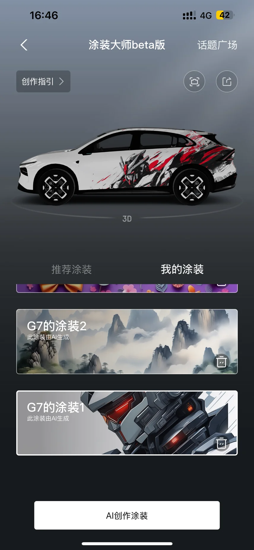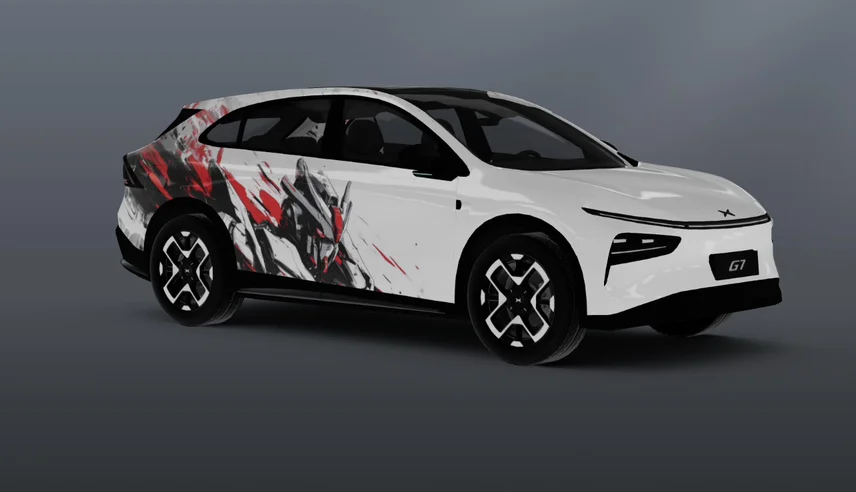 我的涂装设计理念是将机甲元素与潮流艺术融合 。机甲图案以黑白红为主色调,线条硬朗、造型犀利,搭配泼墨般的红色纹理,既展现出机甲的硬核、力量感,契合汽车科技属性;又通过艺术化处理,让整车更具个性、潮流范儿,满足车主对独特、炫酷视觉效果的追求,把汽车从单纯交通工具变为彰显个性与爱好的移动“艺术载体”!