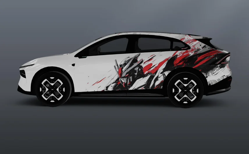 在遵循车型线条、轮廓基础上,借机甲IP赋能,把科幻、热血的机甲文化融入汽车外观,打造专属视觉符号,吸引机甲、潮改爱好者,强化车辆“科技+个性”标签,也让汽车成为车主表达生活态度与兴趣圈层的媒介。
