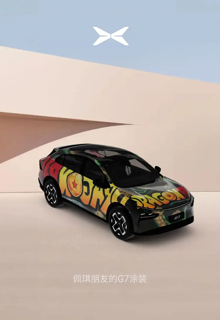 #小鹏G7涂装大师创意挑战# 以七龙珠神龙为灵感源点,小鹏G7涂装设计以翡翠绿珠光漆为基底,模拟神龙鳞甲的金属光泽流动感,车顶用渐变银白漆勾勒神龙腾跃的S型轨迹,车窗边框嵌入祥云纹鎏金饰条,车尾贯穿灯组以荧光绿描绘神龙首仰望天际的轮廓,轮毂中心镶嵌龙珠造型发光徽章,让车身成为“神龙降世”的移动画布,既保留IP祥瑞意象,又通过光影变幻赋予机甲美学新维度。