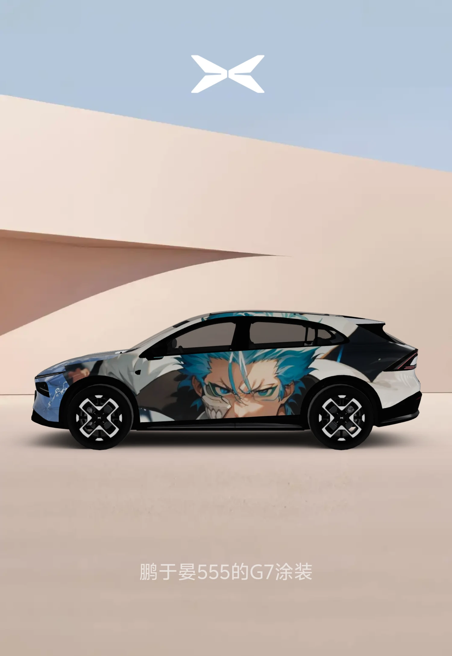 我给G7创作了新涂装,快来围观!#小鹏G7涂装大师创意挑战# 这是我最喜欢的漫画《死神》里面的一位动漫人物,他的名字叫葛力姆乔,葛力姆乔的性格张扬、冲动、高傲,是一位喜欢杀戮的十刃。将葛力姆乔与小鹏G7融合,期望小鹏G7能拥有葛力姆乔般的速度与狂放不羁的姿态,给人带来强烈的视觉冲击和驾驶体验。如果你也是一名《死神》死忠粉,同时又想为爱车注入最喜欢的动漫人物的灵魂,那么这次“葛力姆乔×小鹏G7”的完美融合希望可以给你带来灵感!