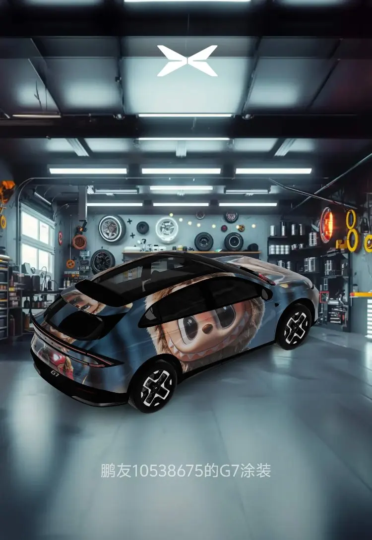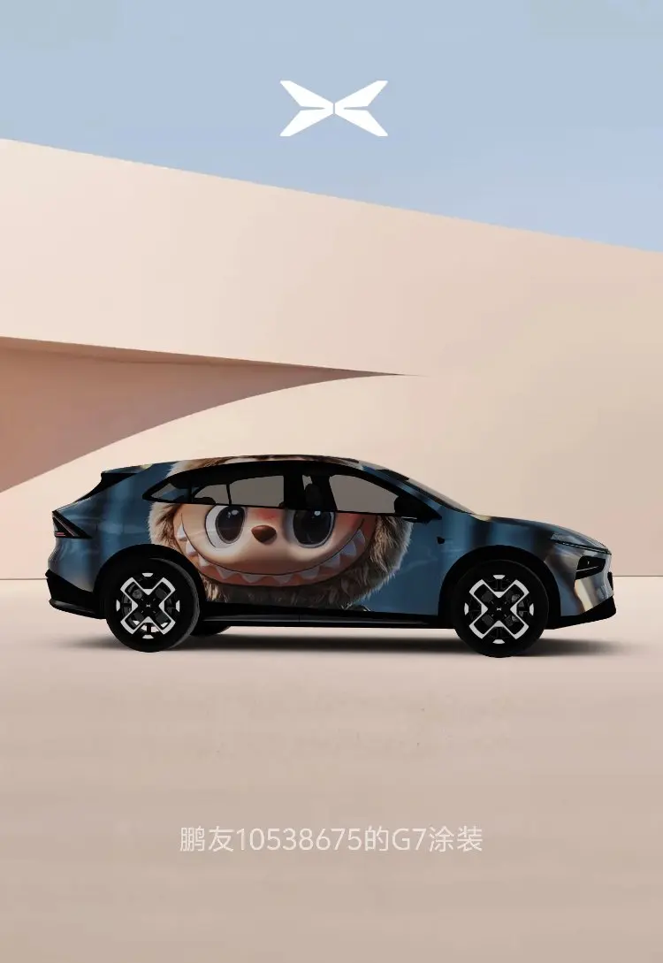 当Labubu涂装在小鹏G7上,就像是把潮流文化与科技出行完美融合。既展现了小鹏G7的科技魅力,又凸显了Labubu的独特个性,让汽车不再只是交通工具,更是一件彰显个性与品味的艺术品。