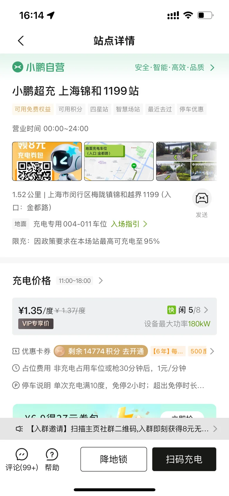这个充电站很不错,价格划算,不少,免停,速度快。