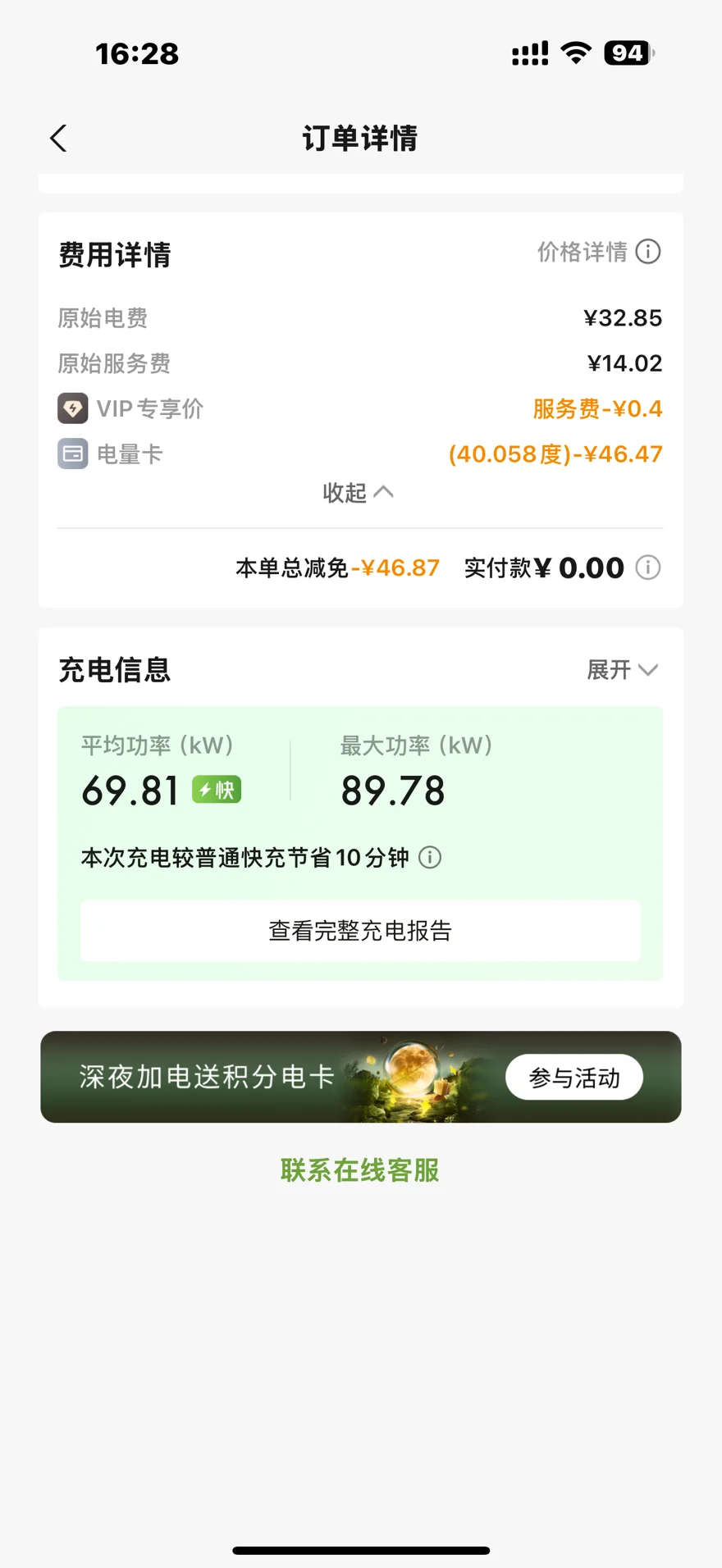 免费权益时不时的还是得用一用的,能省一点是一点,家门口的充电站还是挺方便的,停车也免费,地图指引到位,充电快速便捷!