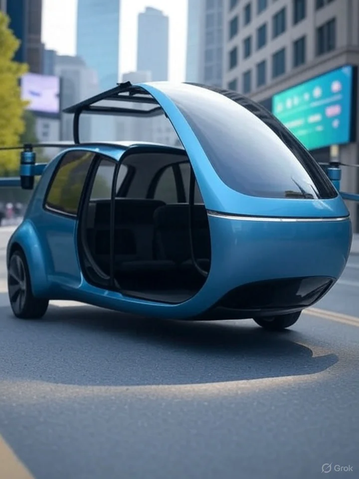 绘制一种未来替代中短途出行,起降方便的公交化无人智能飞行汽车