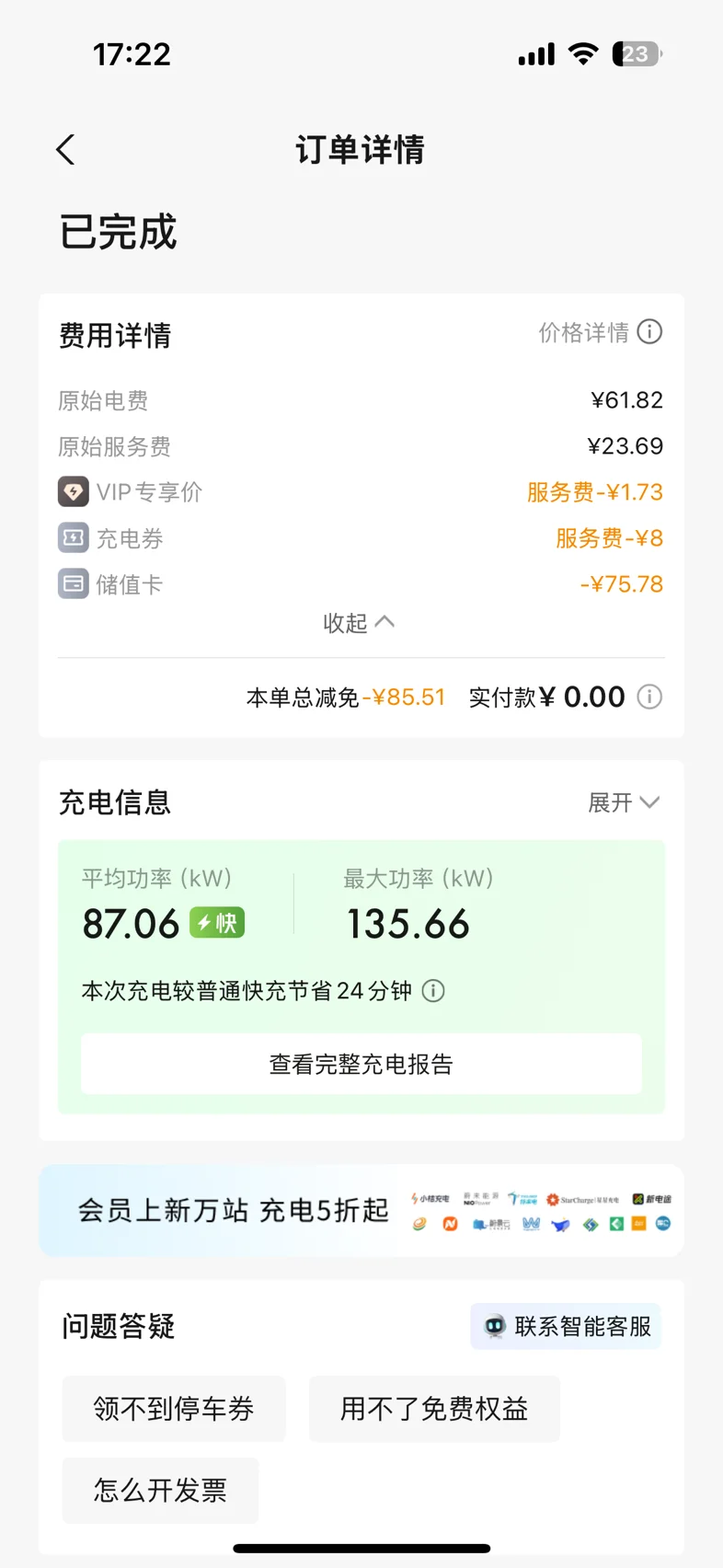 刚好在距离家不远的地方有小鹏快充服务站,然后刚好也送了一张储值卡,就去体验了充电,真的非常不错!充电就半小时左右就充满了,体验感非常不错,而主打就是一个快。
