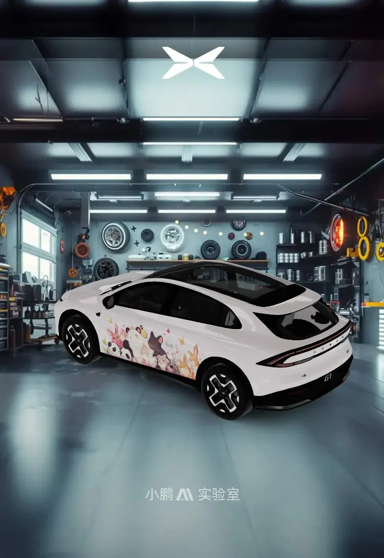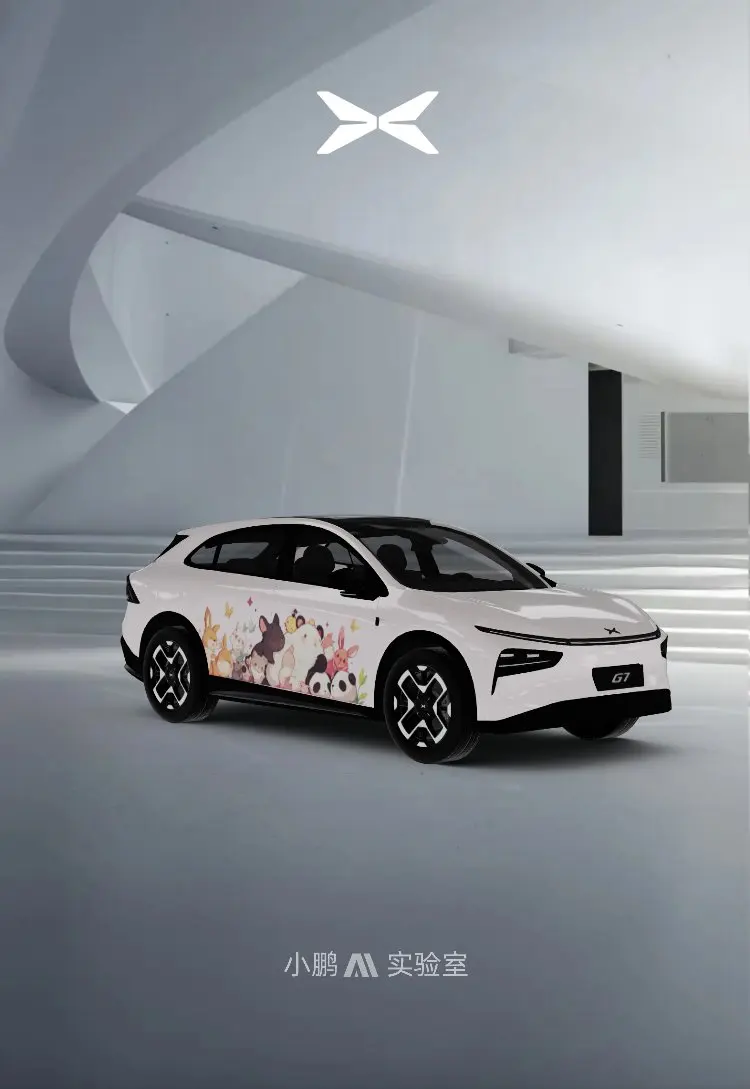 #小鹏G7涂装大师创意挑战# 小鹏G7熊猫喷绘设计以“科技与自然共生”为核心理念。车头以熊猫圆融面部轮廓为基底,黑色眼圈巧妙融入LED灯组线条,形成“萌酷”反差;侧身采用水墨晕染手法,熊猫攀爬竹枝的动态剪影与车身流线型契合,竹节纹理暗合电池续航里程标识,隐喻可持续出行。车尾熊猫爪印图案与扩散器呼应,增添俏皮感。整体以黑白为主色调,局部点缀小鹏品牌蓝,既保留国宝的亲和力,又凸显新能源汽车的科技质感,传递“温柔力量”的品牌主张。