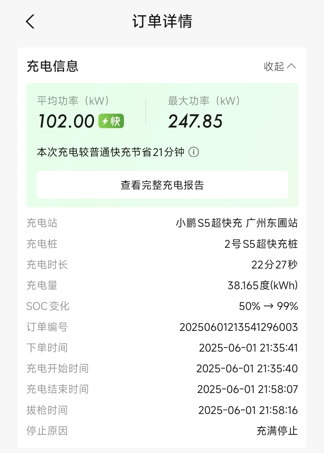 小鹏超充站充电速度很快,从50%到充满20分钟就充好快。充电站的距离稍微有点远,如果在附近超充站就更棒了