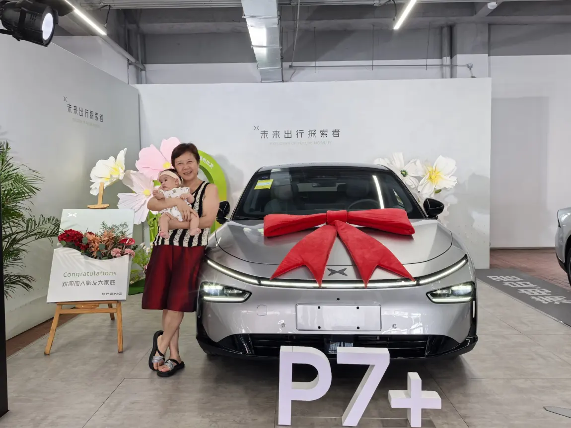 等了一周,终于把小鹏P7+开回家啦!🎉 激动的心,颤抖的手!作为新晋妈妈,选车首要考虑就是空间、安全、智能和颜值,P7+完美击中所有需求!✨