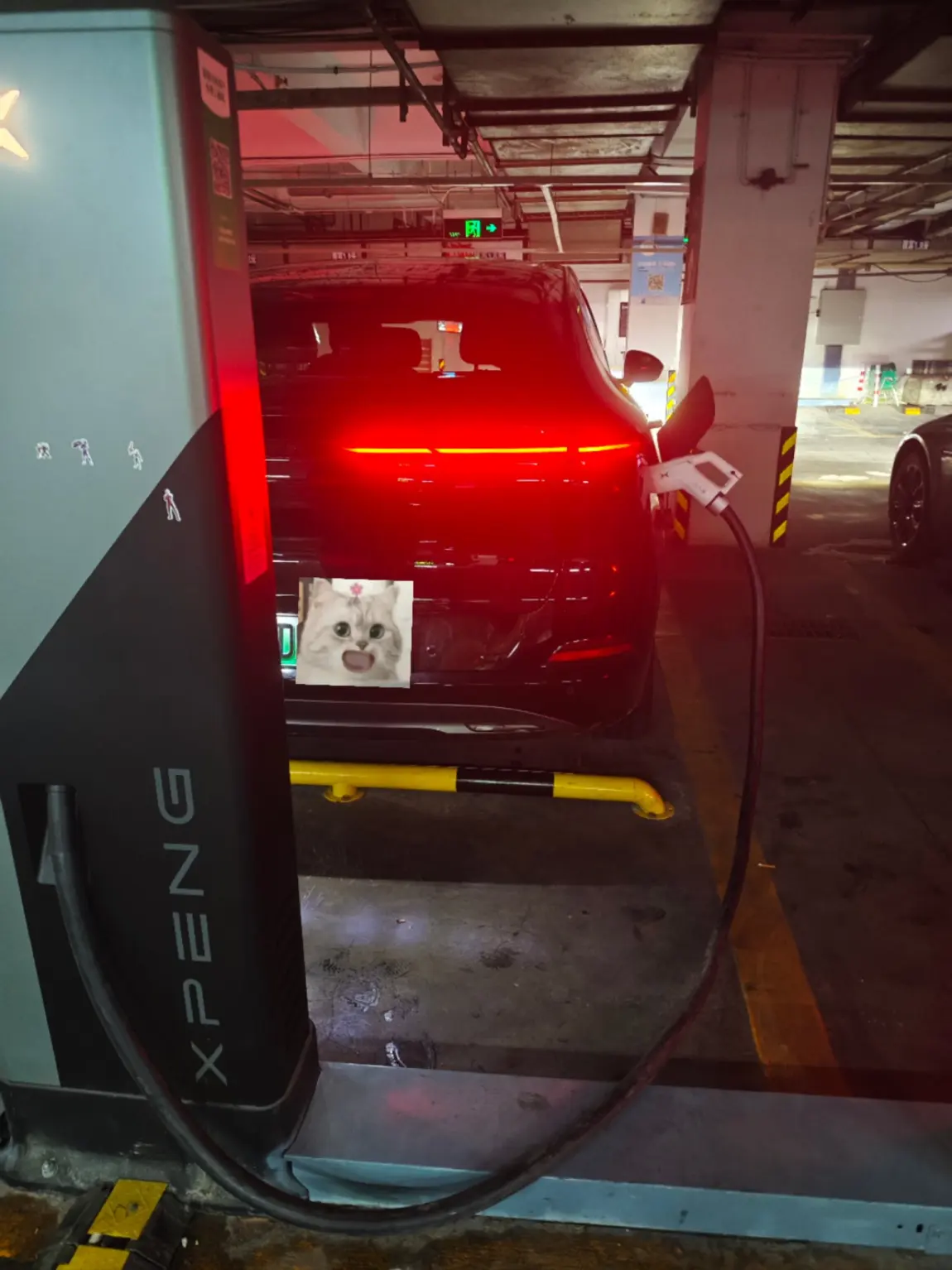 又来小鹏官方充电桩充电啦!我一般充电的电桩距离家有3个公里差不多,是在大润发的地下停车场。一般我都是周末晚上十点开始充电,这个时候一度电才0.73,这样充一次电也不到50元,相比油车加油时候的钱包空空,果然这个时候才更能体会到电车的好处。😃