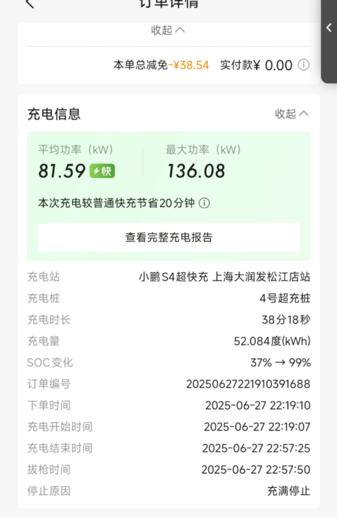 并且磷酸铁锂电池要求每隔两周充一次比较好,所以我都是不管是否还有电,也每隔两周充一次。每次都是打开小鹏APP,扫码降下地锁,插上电枪开始充电。当然这里也有S4超快充桩,但是我一直都没有试过,今天来充电的时候还等了半个小时才排到我,果然大家都是大晚上来充电,新能源车主的默契哈哈哈。#晒出家门口小鹏会员站# #鹏友充电攻略# #小鹏充电站打卡#