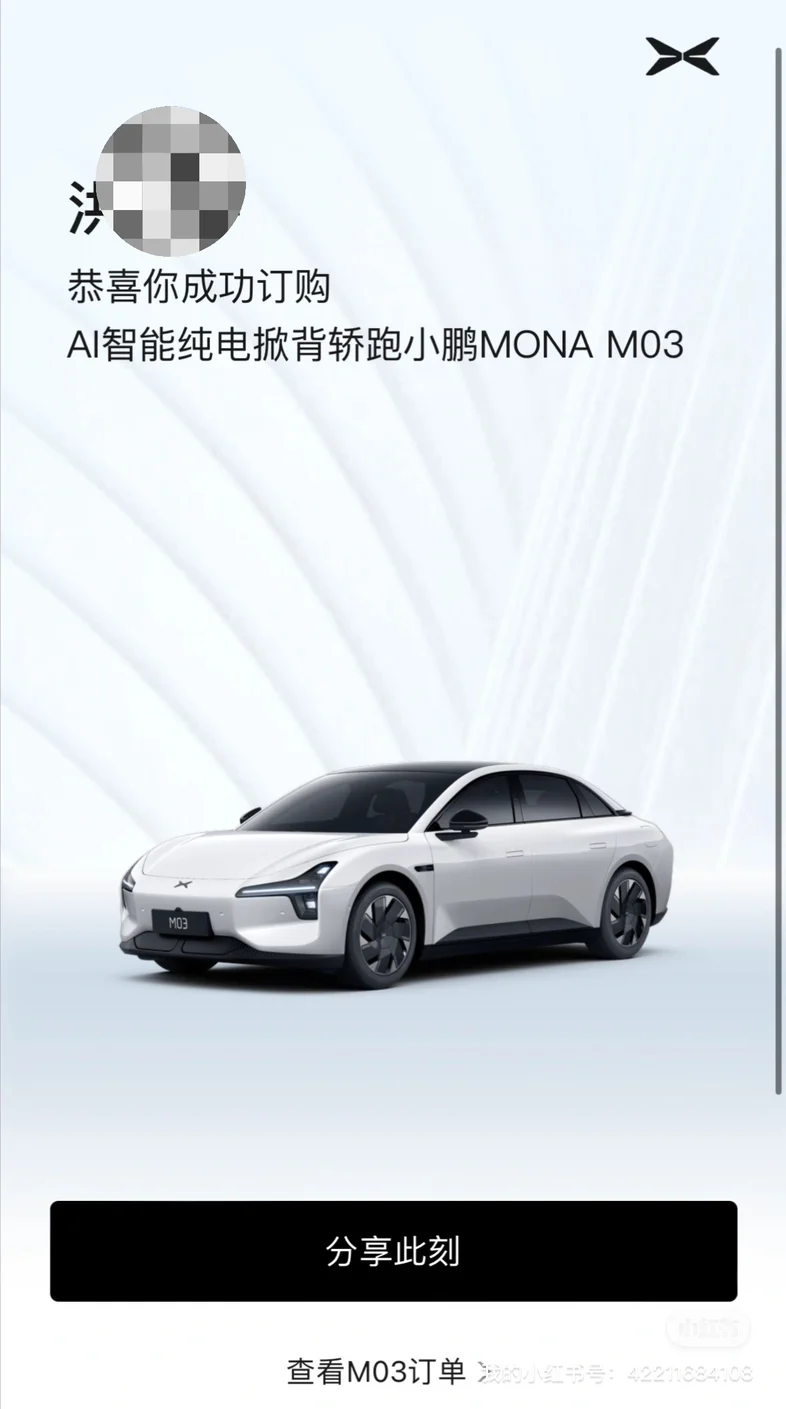 试驾完m03果断下定啦,下定之后虽然中间有点小波折,新车到店检查后剐蹭了,不过小鹏工作人员很快给我换了台,总共也就等了一周左右。