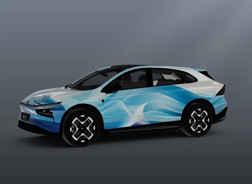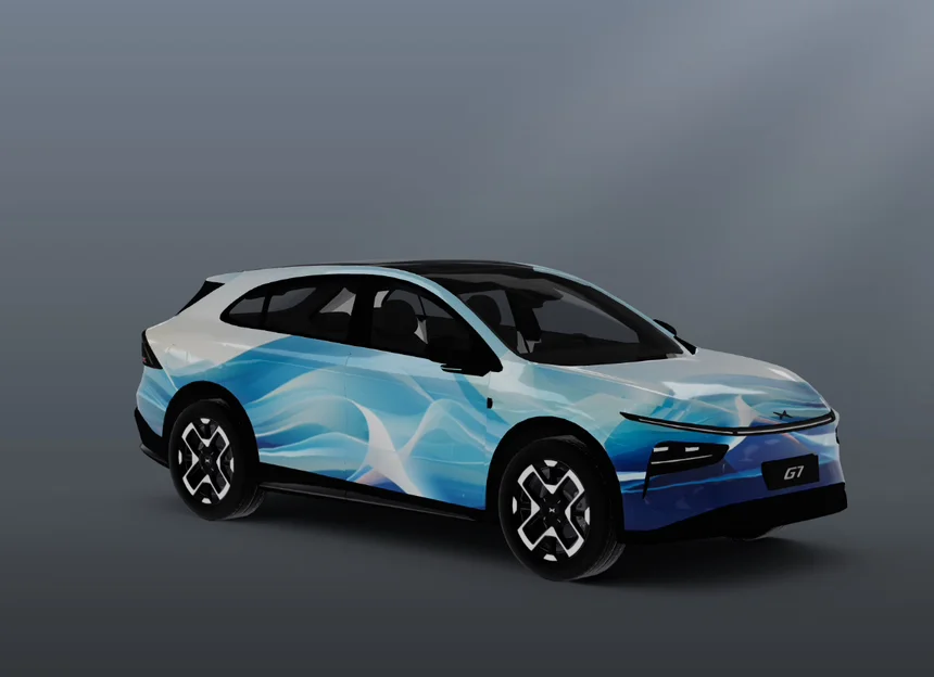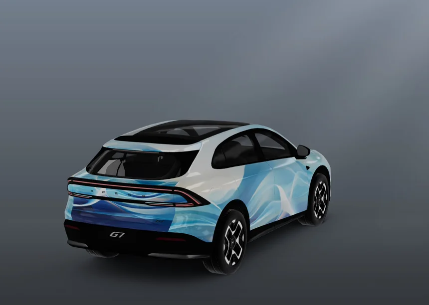 我给G7创作了新涂装,快来围观!#涂装大师创意挑战# #G7涂装#小鹏G7作为一款充满未来感的车,其兼具运动和科技。如何才能让车辆看起来更运动,更显科技。我觉得在涂装中融入线条是必不可少的。随风拂动的彩色线条,让车辆仿佛一直处于运动之中,去勇敢地面对风的挑战,突破自我,勇往直前。而浅蓝相间的线条,又让车身更加多彩,增添了不一样的韵味。
