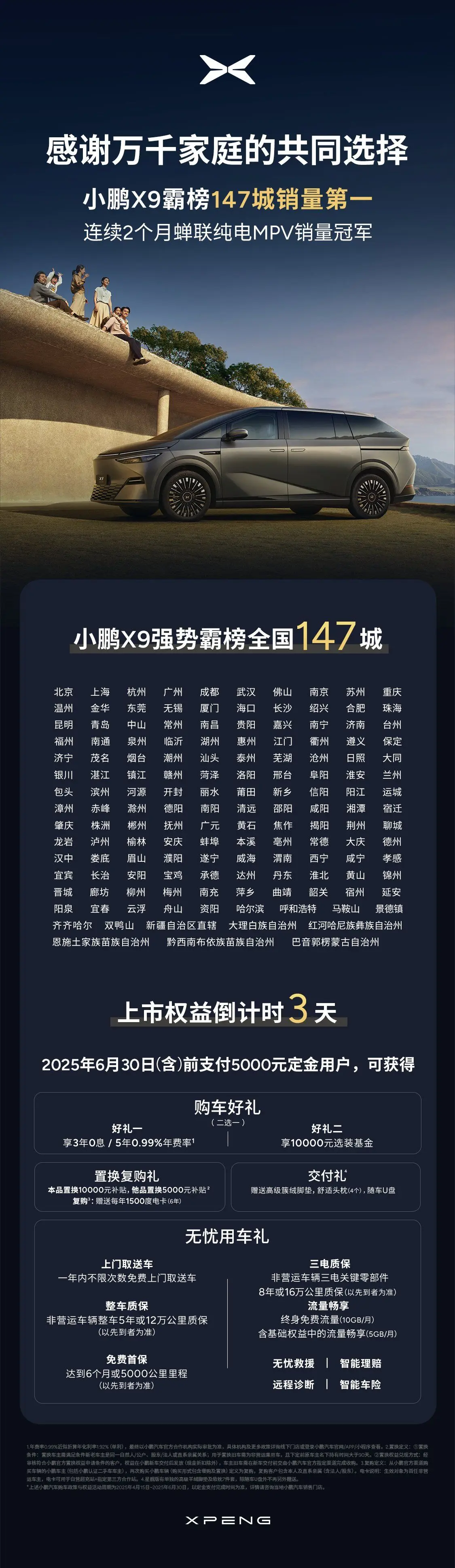 被小鹏X9的成绩单惊到了!上市仅俩月,直接拿下高端纯电MPV销冠,还在147座城市登顶销量榜首,北上广深这些一线市场都被它“拿捏”!对比理想MEGA和极氪009,这碾压式的数据太硬核了! 明星和博主们也疯狂安利,陈震天天晒日常,郑恺、江映蓉直接用它装自行车,露营、全家出游一车搞定。后轮转向+智能泊车对新手超友好,比SUV灵活,又比传统MPV能装,难怪口碑销量双爆!现在海外版图也在加速扩张,国产MPV之光实至名归!#小鹏汽车