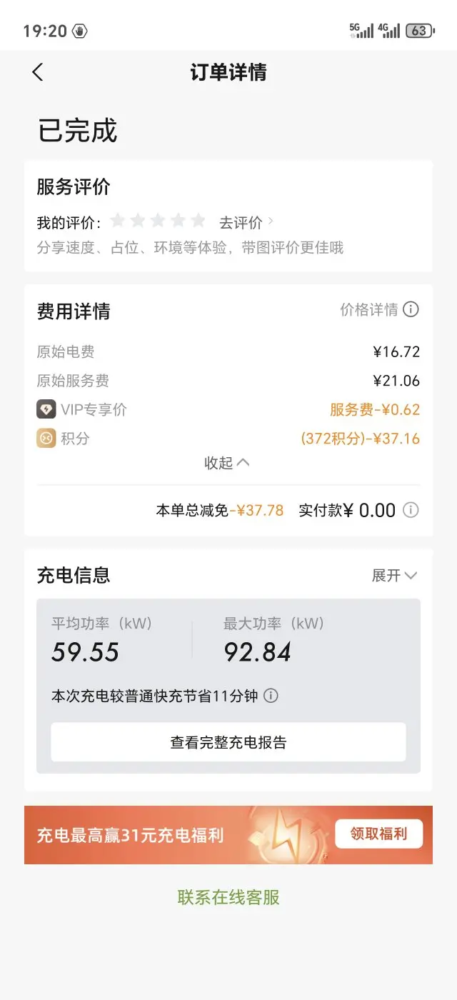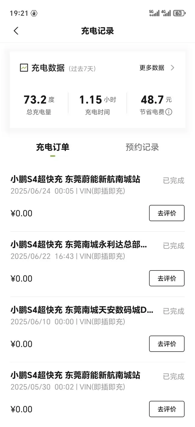 自从买了小鹏后就没在外面充过电,一直都是小鹏自营充电桩,平均1个小时充满(小鹏M03)还剩下很多积分。