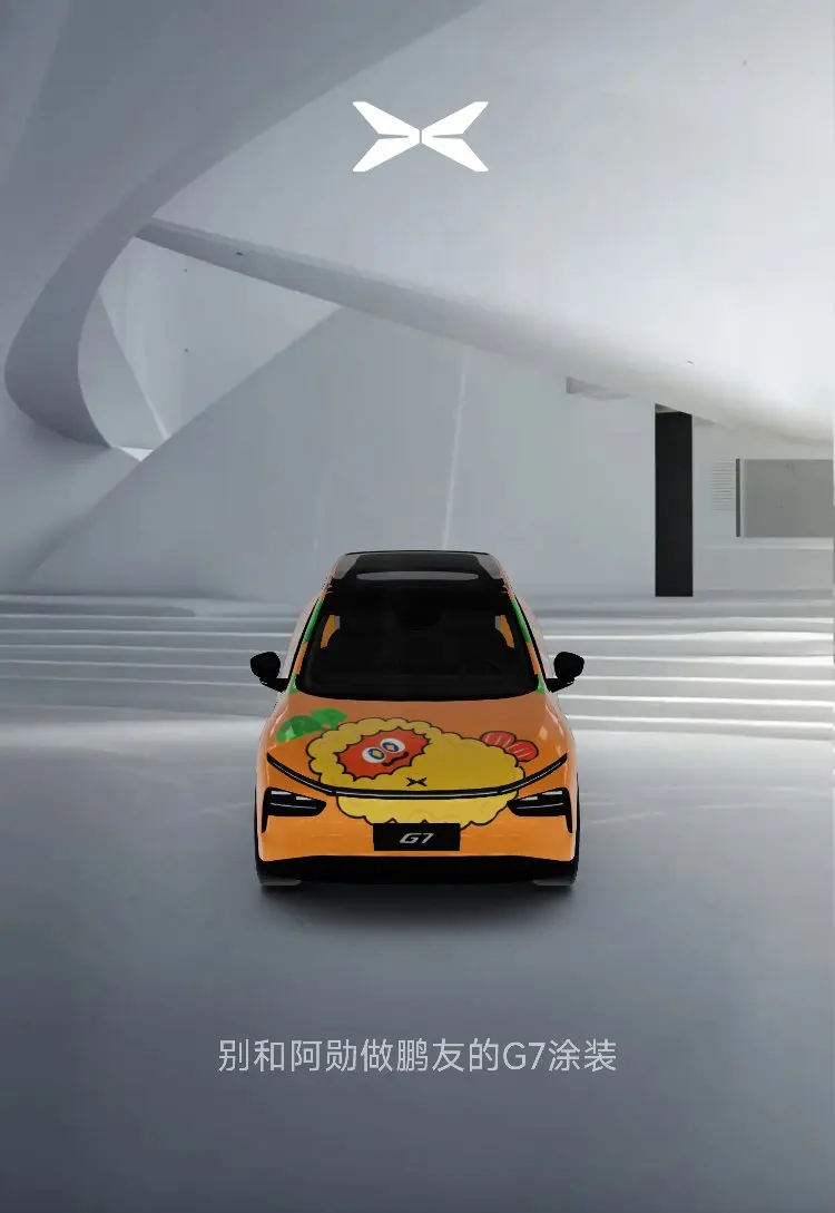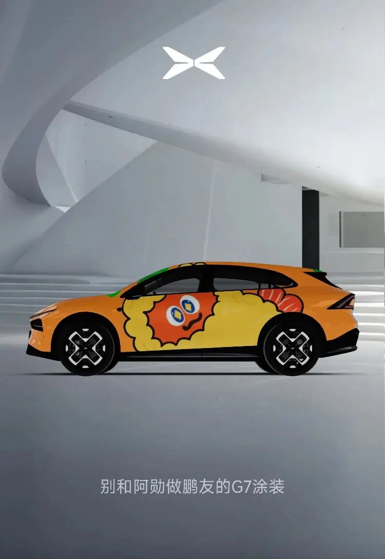 既然是涂装,当然是要好看、个性、主打一个吸精,甚至可以成为社交名片。作为一名吃货wmls,这次给g7换上了魔魔胡胡胡萝卜天妇罗涂装,橙色的底色彰显活力,软软糯糯的油炸虾可可爱爱,开着它去看演唱会绝对是wmls中最靓的仔!。#小鹏G7涂装大师创意挑战#