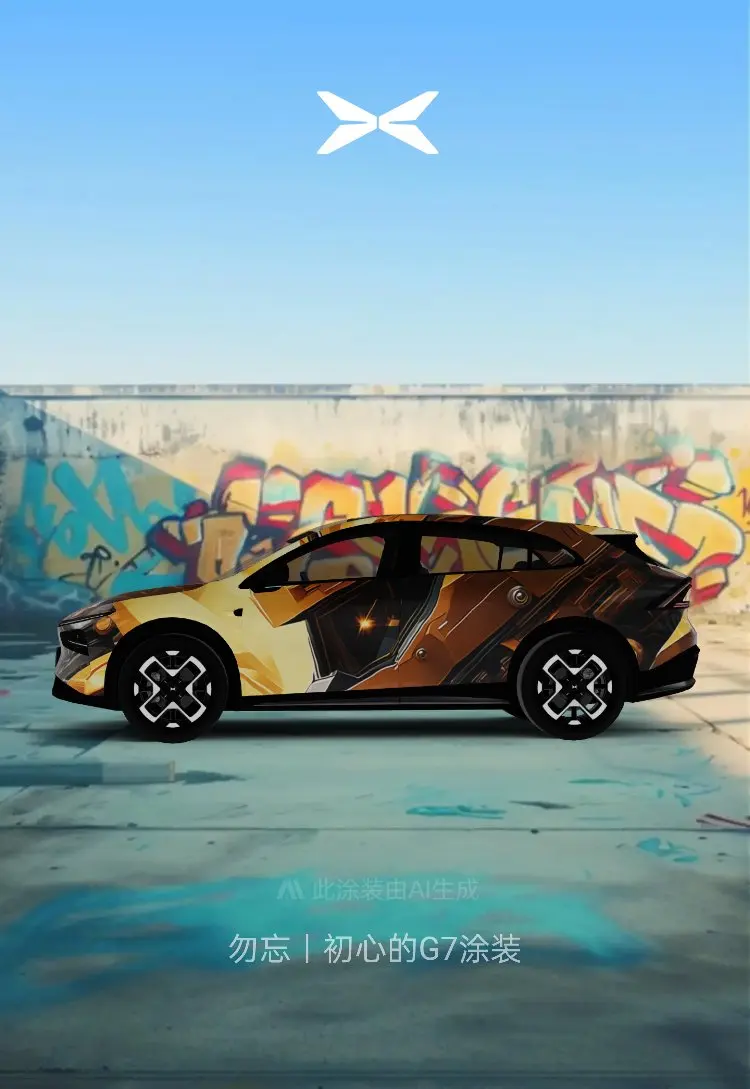 #小鹏G7涂装大师创意挑战# 设计灵感来源:科技崇拜与战斗美学。以金黄液态金属配色(90%液态金属黄+10%激光金)复刻MK战甲经典风格,引擎盖中央嵌入脉冲蓝光LED模拟“弧形反应堆”,赋予车辆能量核心的科幻感。 车门植入纳米粒子扩散纹路,模拟战甲变形过程;车身侧面的硬边几何线条勾勒仿生肌肉铠甲,强化力量感与动态张力。车身棱角嵌入UV夜光漆打造的幽蓝电弧光带,模拟掌心炮充能轨迹;轮毂采用黑银配色复刻机甲履带细节,转动时呈现蓄能效果。小鹏G7的机甲风涂装以“科技崇拜”为精神内核,通过高饱和撞色、机械解构纹理、动态光效三大手法,将车辆转化为“公路战甲”。它不仅承载用户对科幻IP的情感投射,更与小鹏G7的L3级算力、AR-HUD等AI科技形成深度共鸣,重新定义智能汽车的视觉表达。