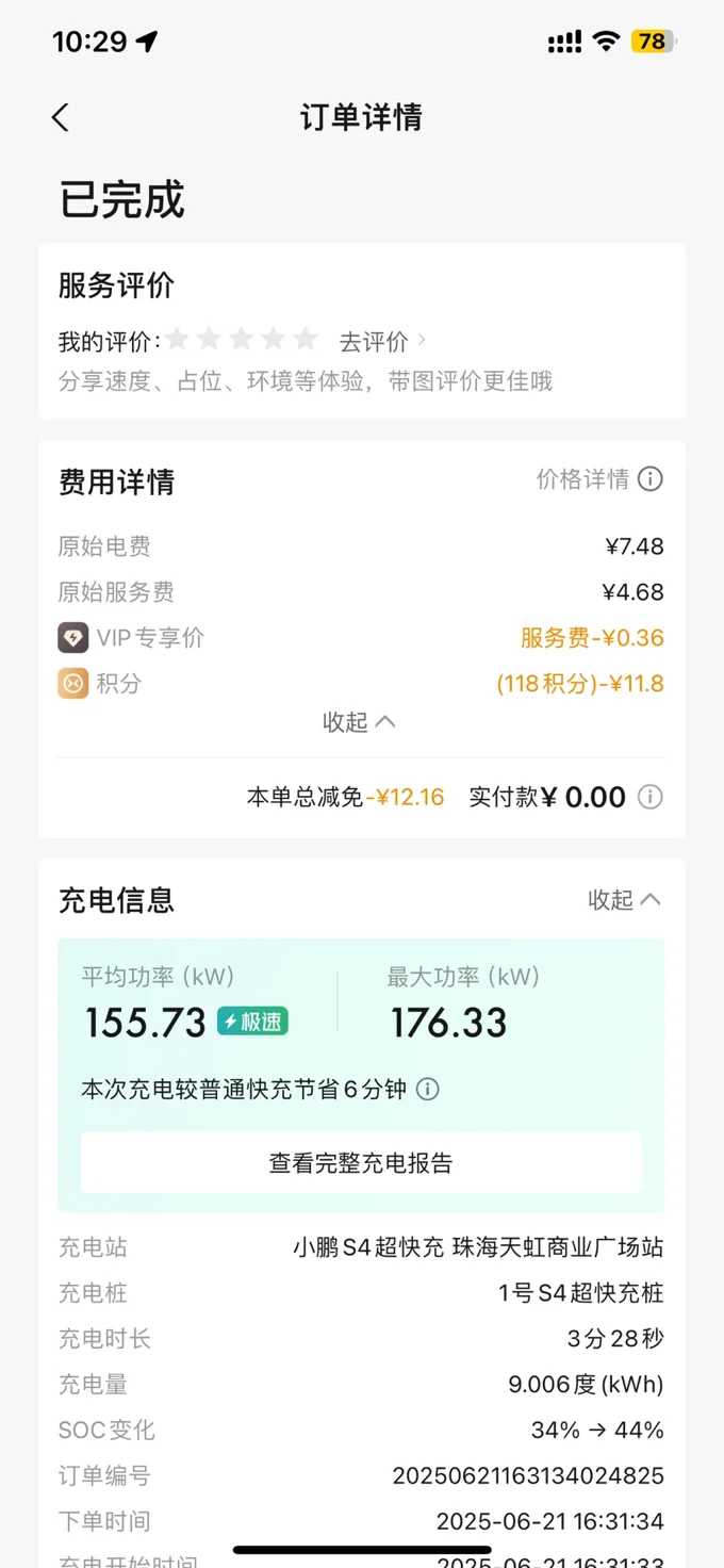 #晒出家门口小鹏会员站# 家门口的小鹏S4超充实测表现太惊艳了!线缆采用黑科技设计,比普通充电线细了30%,女生也能单手轻松操作。充电速度更是惊人,电量从34%充到44%只需3分钟。而且它还有智能温控功能,大功率充电时能主动散热,既安全又不伤电池。不是所有快充都能叫S4,这充电速度,连手机充电都得自愧不如!@充电小助手