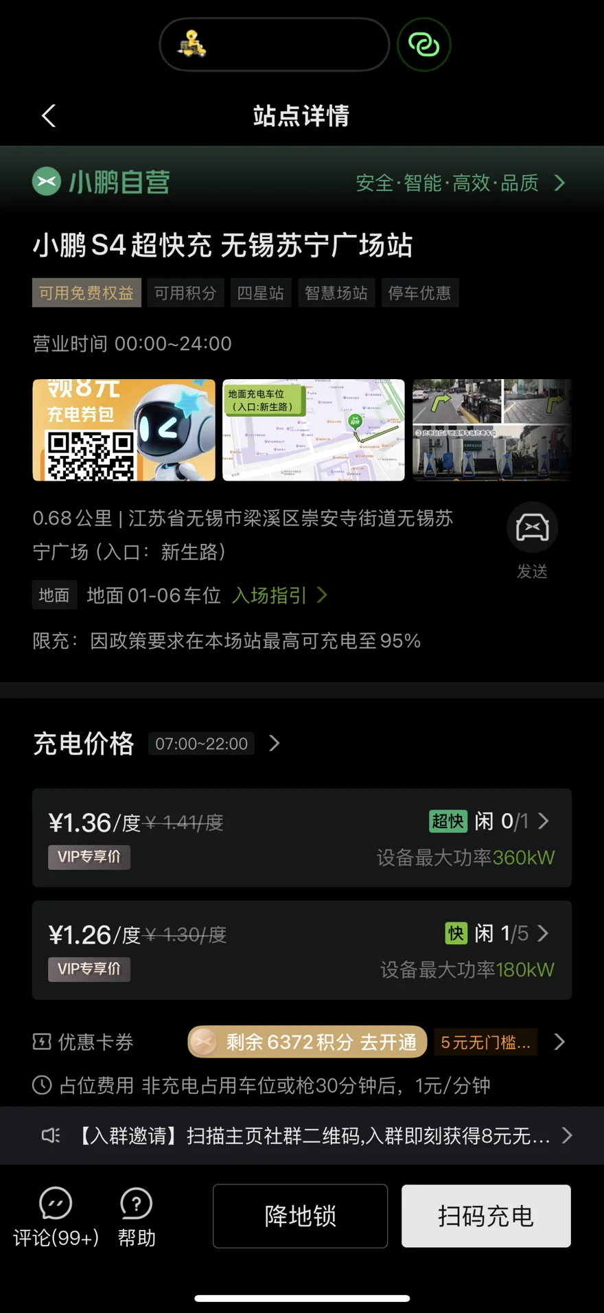 小鹏的充电站的覆盖面还是算广的,每次都是等在10点之后优惠充电的时间点,没有每年充电卡的人和没有充电桩的人的勤俭持家的选择