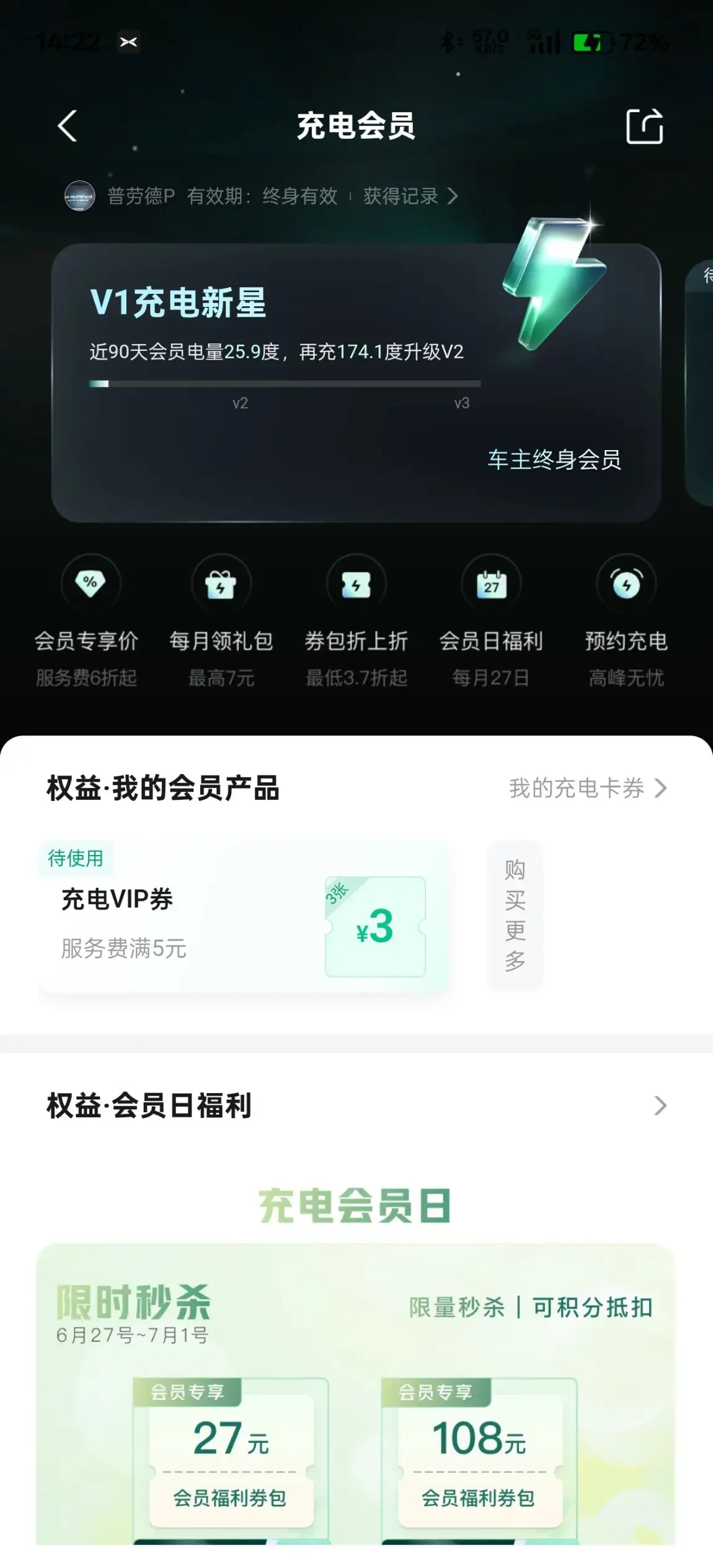家充用户,较少在外面充电站充电,希望多多推出福利,充电会员不错