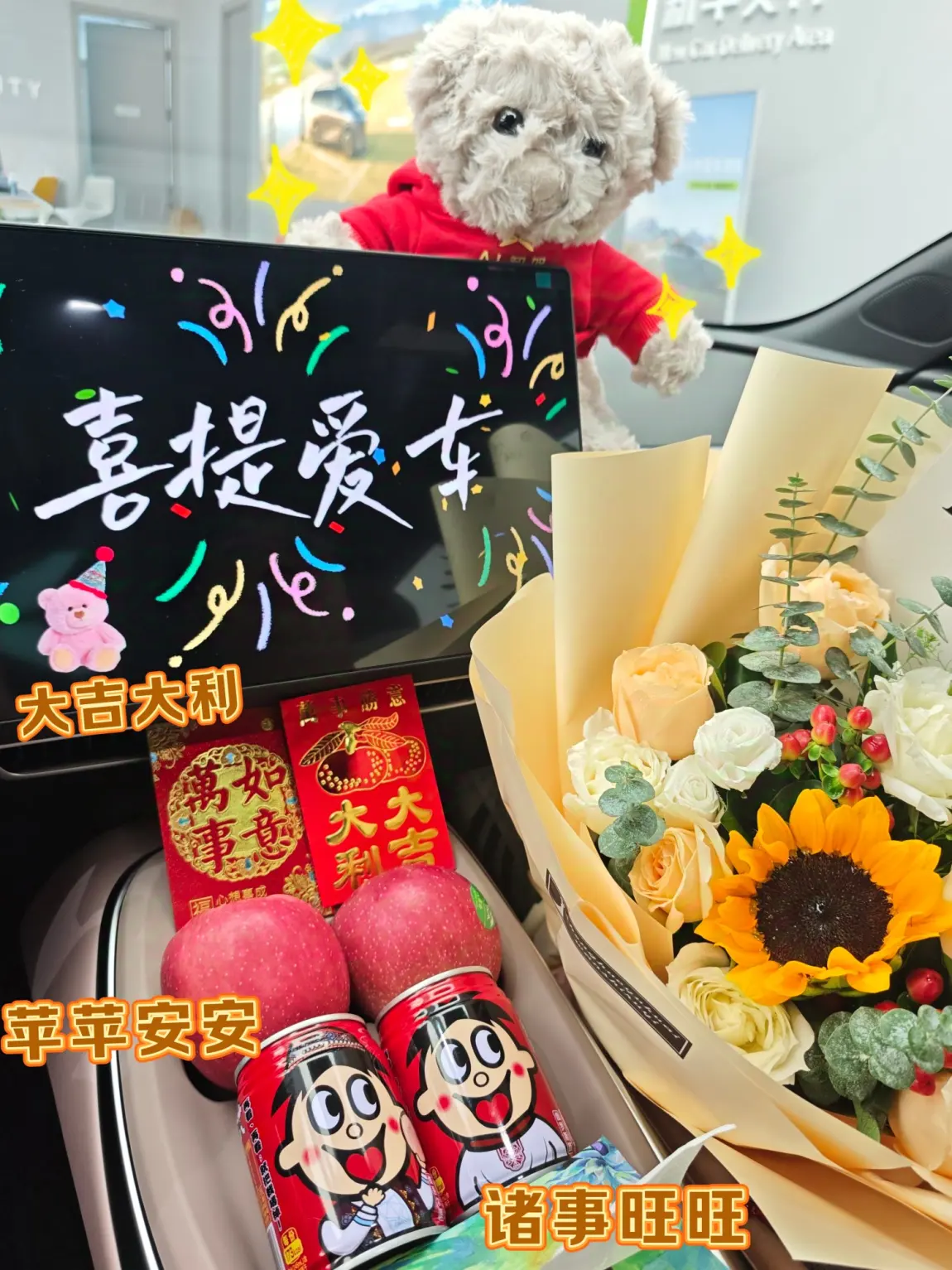 #我的提车作业# 喜提新车!人生满电出发⚡️终于等到这一天啦!我的第一辆小车车正式加入我的生活🚗 从选车到提车,整个过程就像在追一部超甜的偶像剧,每一帧都让人心跳加速💓4S店的小哥哥小姐姐们超贴心,交车仪式感拉满🎉 还准备了超可爱的鲜花和公仔✨坐进去的那一刻,感觉自己的人生电量瞬间满格🔋 方向盘的手感、座椅的包裹性,连空调出风口的设计都长在我的审美点上😍最惊喜的是智能系统,语音控制超级灵敏,导航、音乐一句小P搞定🎵 从此告别手忙脚乱开车,安全又方便👏已经迫不及待要开着我的新宠去兜风啦!