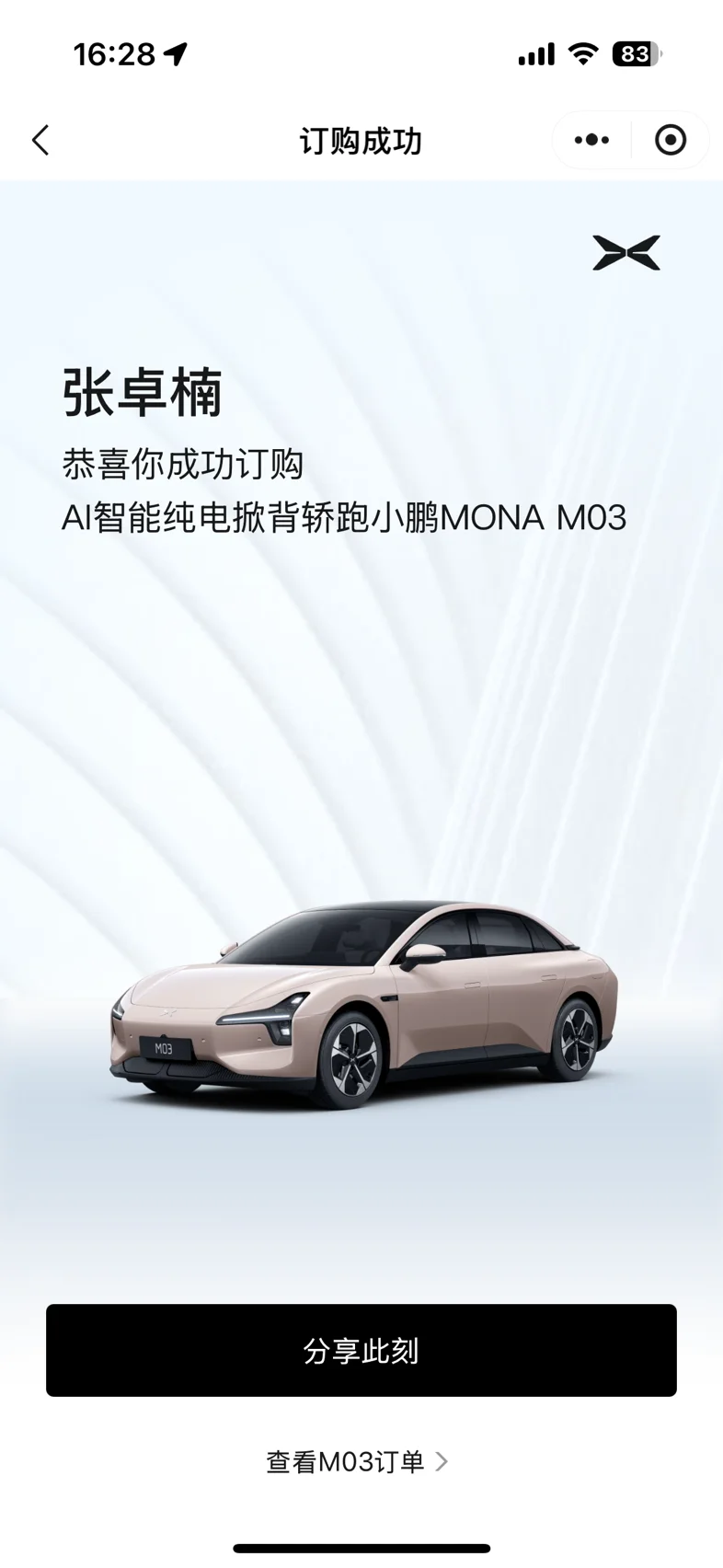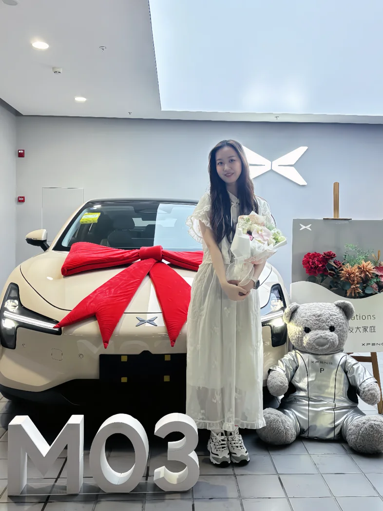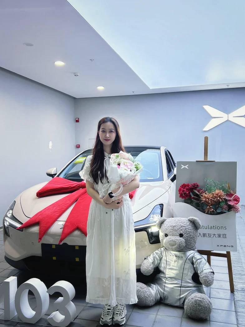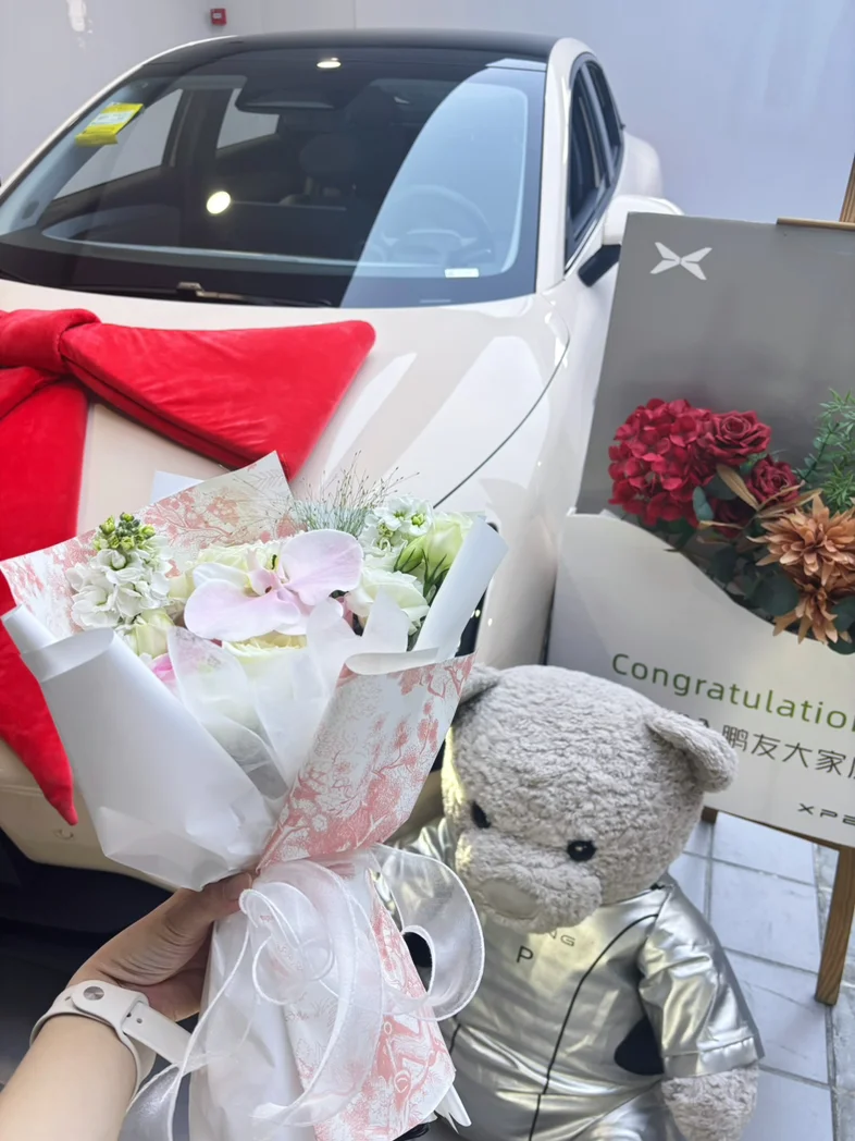 #我的提车作业# 下定后,三天时间就配车了,这个速度真是绝了!人生第一辆给自己买的小车车🚗选择了小鹏,也是被mona3的颜值一眼吸引了。后续又了解了各方面性能,比下来确实觉得性价比很高,所以就果断下手了。恭喜我自己成了鹏友,我会好好爱护它,也希望它给我陪我更久,带我去更多的地方。(ps:提车当天的花也很好看,让我那一整天的心情都是很好的!)目前已经开了一周了,没有发现什么大稳定,各方面都很稳定。😘😘😘