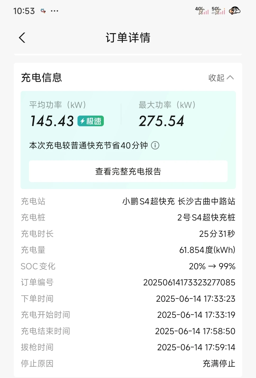 第一次体会到800伏的威力,25分钟就充满啦,给小鹏点赞。而且会员还有优惠,超划算。