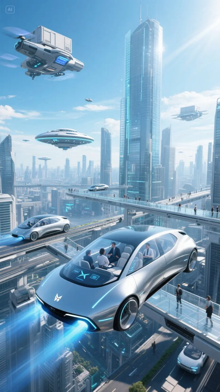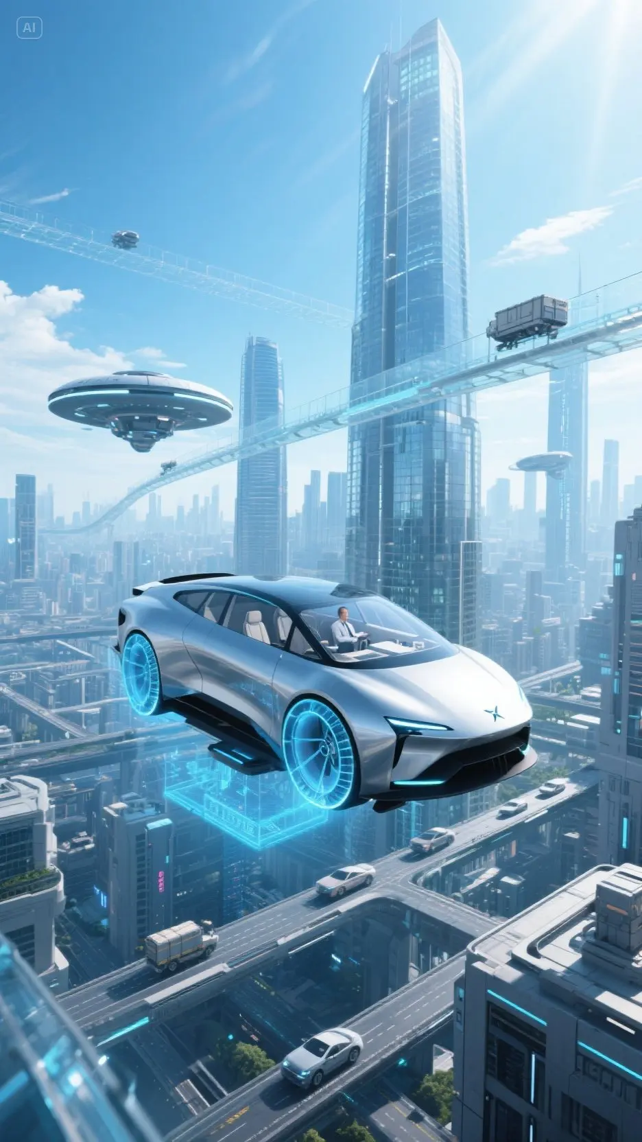 #我的科幻座驾# 在未来世界那璀璨的天空下,城市呈现出一派前所未有的繁华景象。纵横交错的立体交通网络中,空中小鹏汽车穿梭往来。它们不止是家用车,或是用于货物运输,或是作为城市的空中巡逻设备,时刻守护着这座未来都市的安全与秩序。