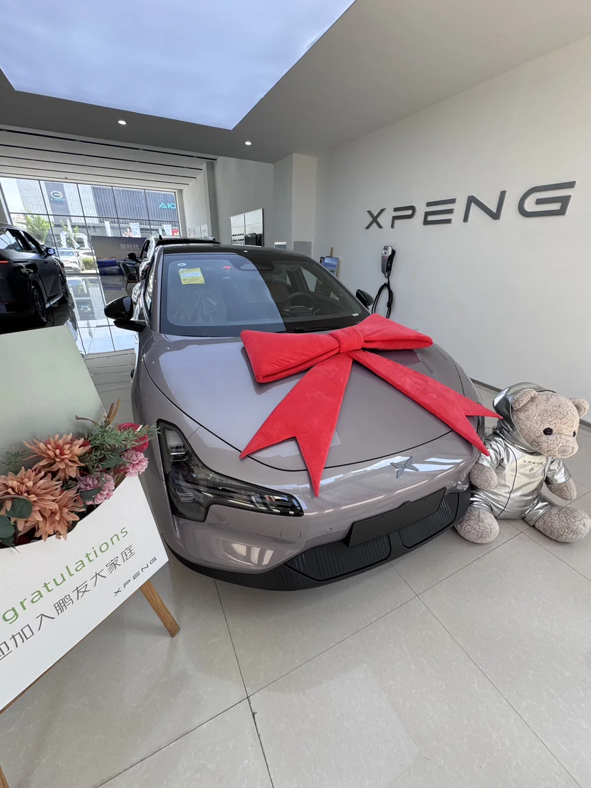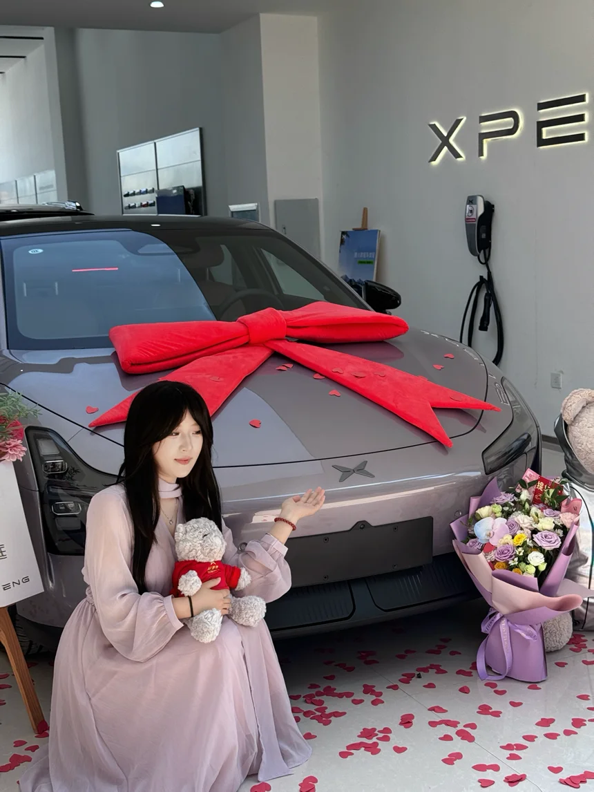 最后就是超有仪式感的交车仪式啦!我的销售哥专门准备了提车的鲜花,还有交付中心送的小熊!天气很热,交付主管还帮我和爱车拍了好多美美的照片,记录这个时刻,真的很暖心!!!#我的提车作业# #小鹏暖心服务# #小鹏MONA M03#