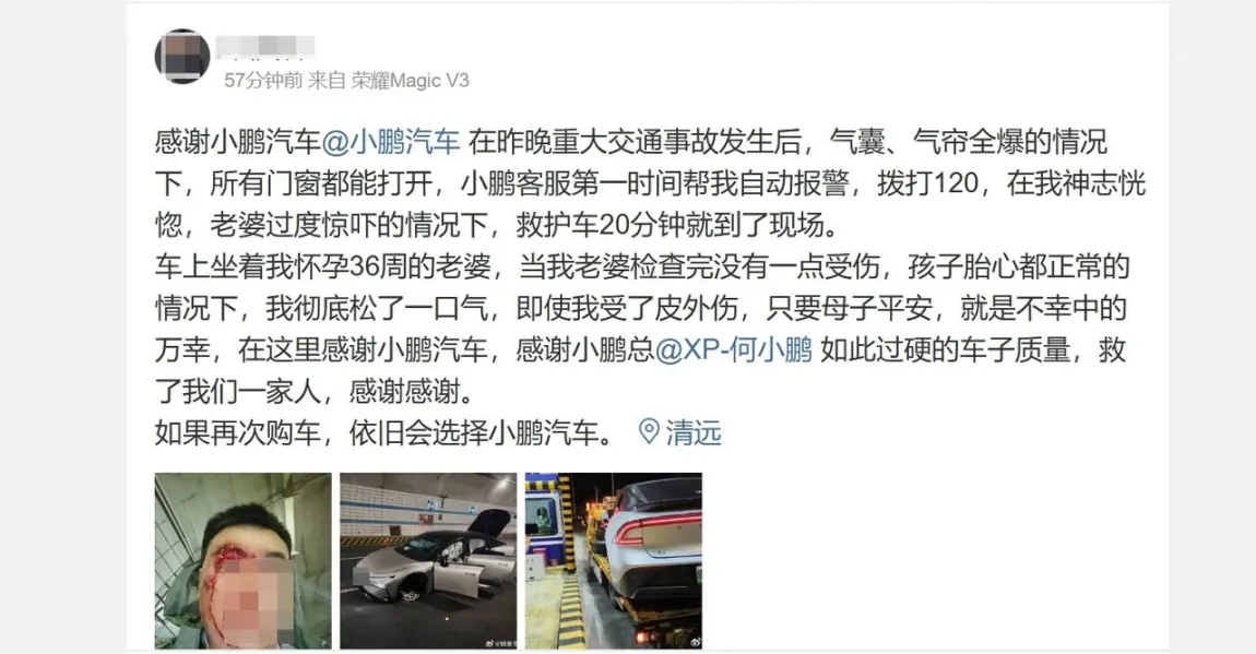 车载系统在 90 秒内锁定位置,自动报警的信号如闪电般划破黑暗,2 分钟内,电话高频调度,救护车的鸣笛声在 20 分钟内划破寂静,小鹏服务中心的守护如影随形。车内,一位怀有 36 周身孕的准妈妈,竟在这场事故中安然无恙。数日后,她平安产子,新生命的啼哭声,是对小鹏 P7+安全性能的最美赞歌。