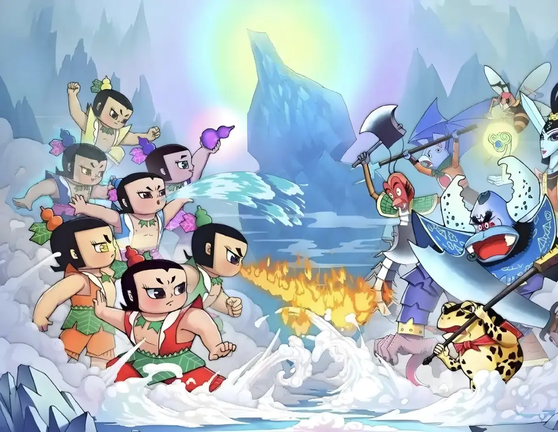 🤔🤔确定好设计理念后,开始在脑子里寻找符合的设计元素,一开始想到了太极图、光线连接的几何图、极光、鹰眼等图案,但是这些拼凑起来很难做到车身四周色调的融合,而且相互关联性不强,显得有些杂乱无章,偏离了最初的设计理念,后来在找能体现大空间元素的时候,想到了西游记中金角大王可收纳万物的紫金葫芦,然后就联想到了家喻户晓、人人皆知的动画片“葫芦娃”,正好七个葫芦娃可分别对应小鹏G7的大部分主要特点,而且同样也是数字七,完美呼应,非常契合我的设计理念。