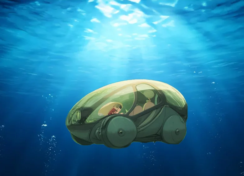 这是水陆两用的车子,样子很像一个鼠标,密闭性很好,动力十足,造型可爱,像一个小海龟一样,未来感十足的一辆车车