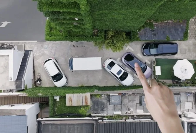 1. 先在中控屏上“画”出停车位——就是用手指框出我想停的区域,连旁边有石墩、树坑都能标出来
