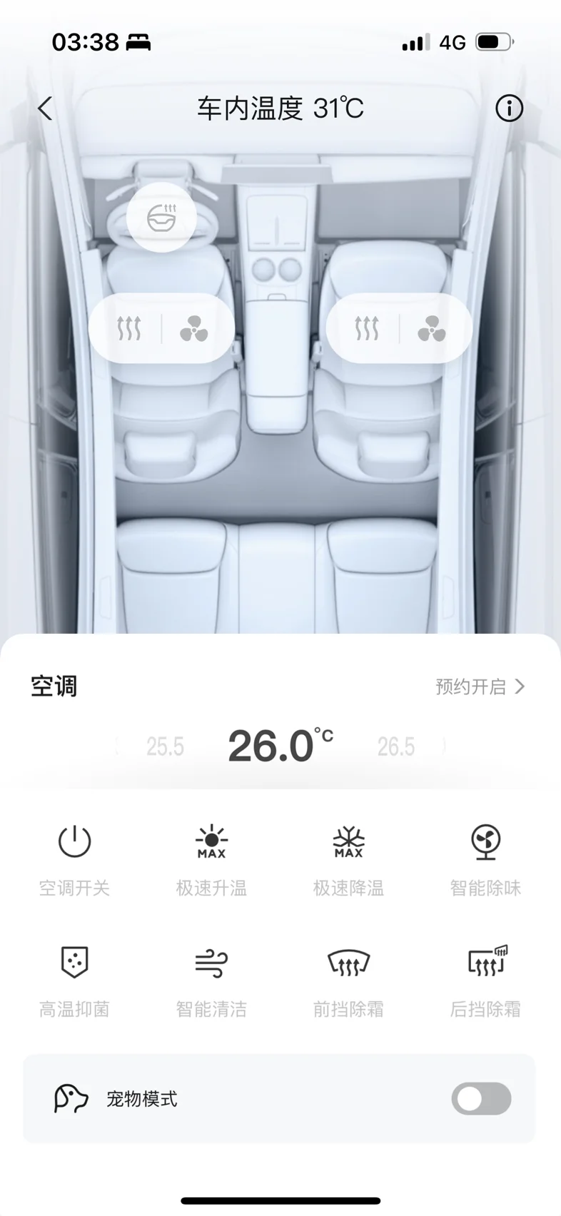 • 空调使用:上车前10分钟通过小鹏APP远程开启「极速降温」,空调和座椅通风同步工作,上车即享清凉。行驶中温度稳定后切换至内循环,风量控制在2档以内,空调温度设为23℃最节能。