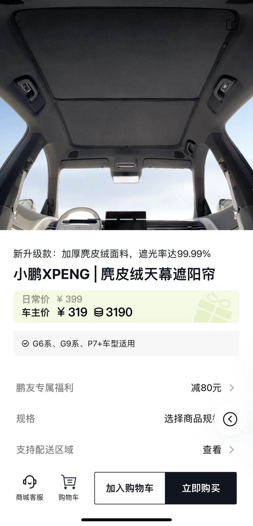 还有小鹏商城里其实有不少原厂出品的实用好物,设计贴合整车,品质也更有保障,能在夏季用车时带来不少实际体验上的提升,像原厂太阳膜、遮阳帘这些都是热门推荐,既能有效隔热,又不会影响美观和视野,实用性直接拉满。