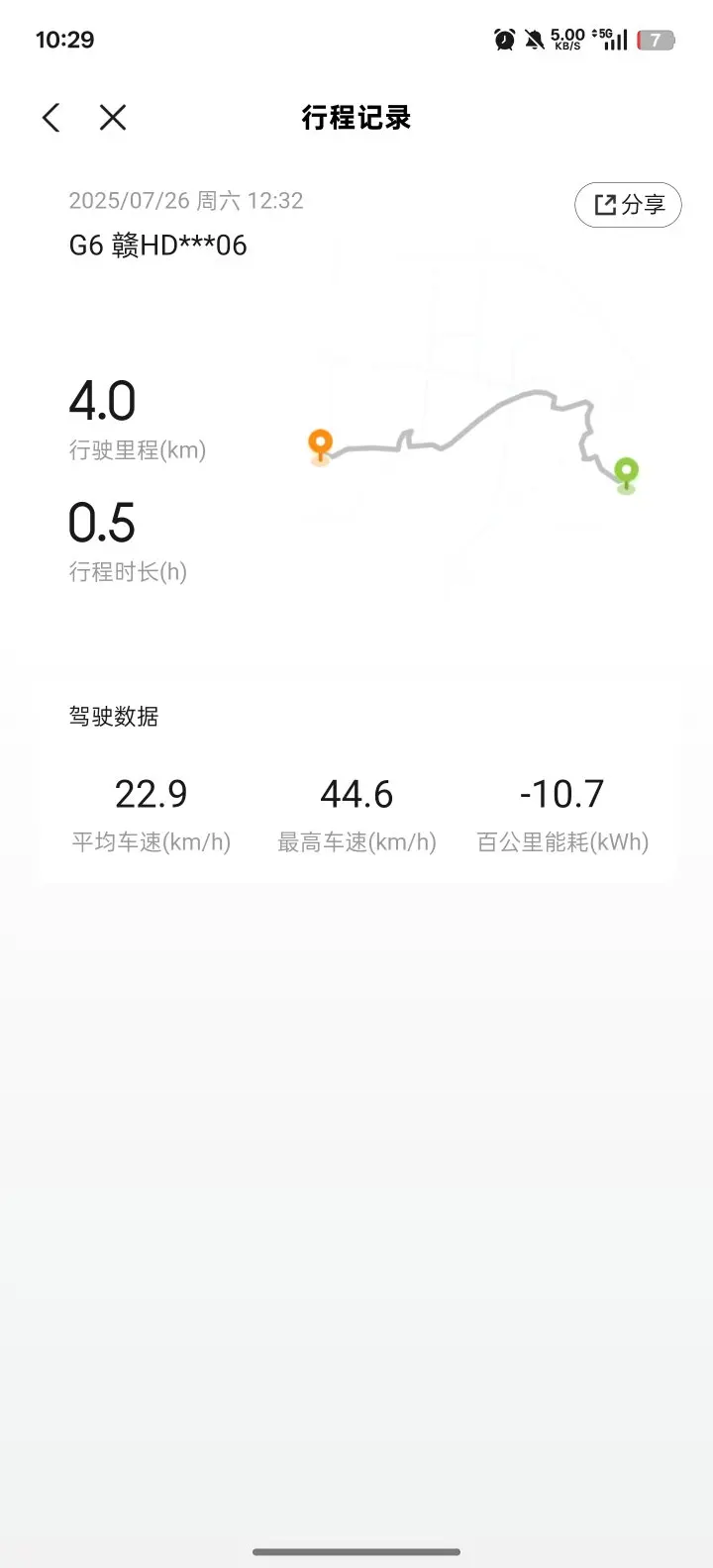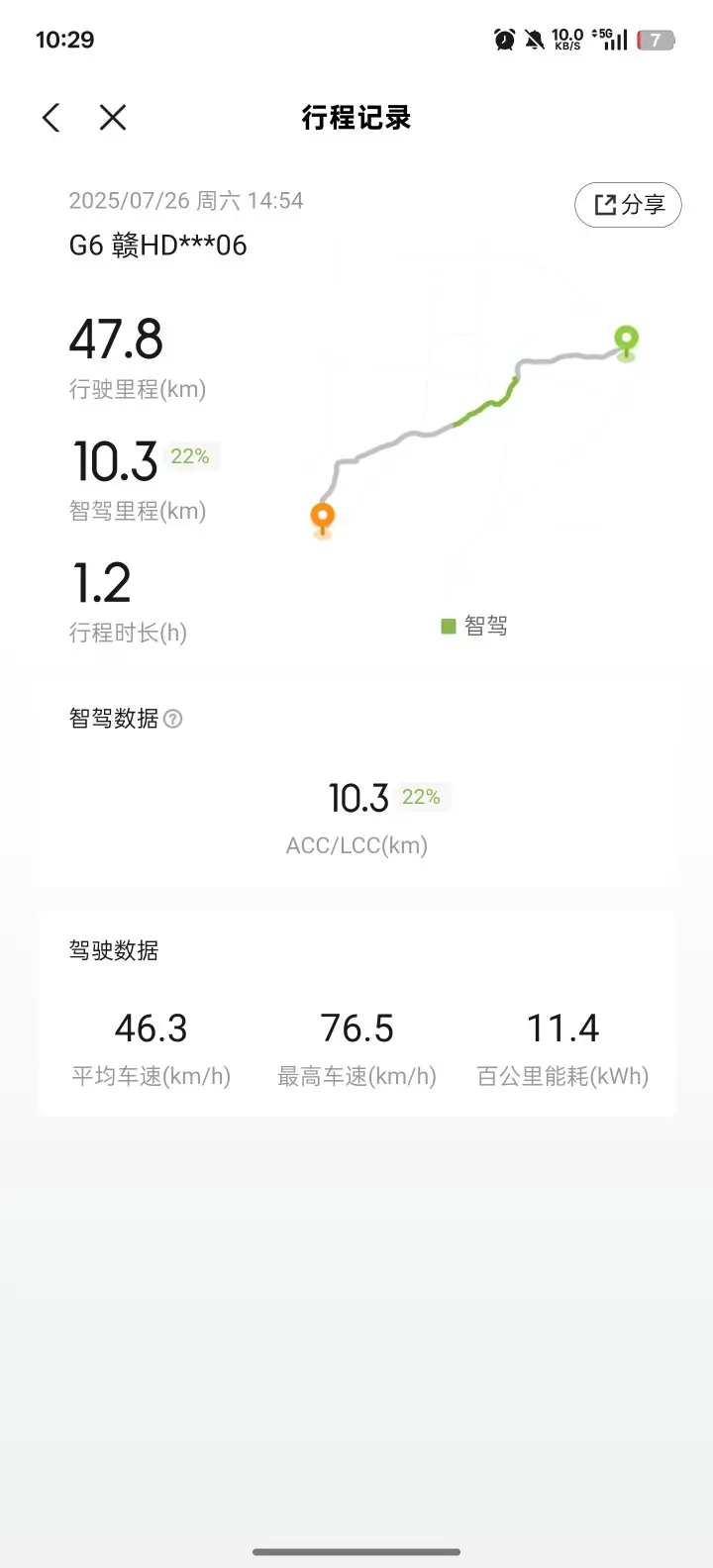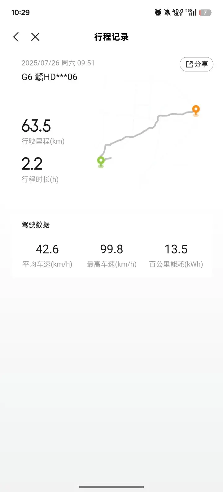 去程,先去老家接了爸妈一起,一家四大一小,满载出发。全程63.5km,抵达高岭后,显示行驶能耗为13.5kwh/100km,wltp续航达成率107%,还是不禁对G6的能耗感到震惊!