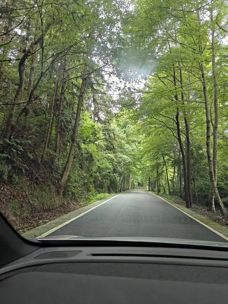 停车在山路旁边,可以感受到大自然的新风和秀丽。