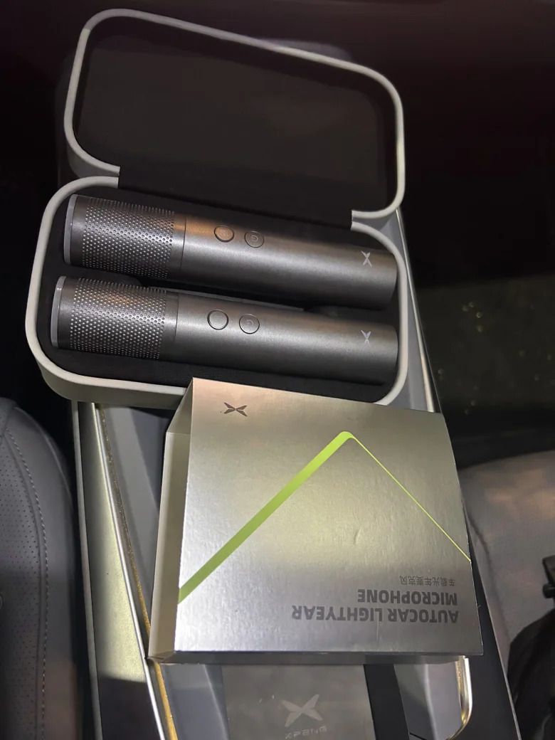 小鹏Mona M03的车载K歌太让人惊喜了!自带的麦克风造型简约又好看,银灰金属质感搭配圆润边角,握在手里轻便又趁手,连配套的包装盒都像精致礼盒——绒面内衬裹着麦克风,平时不用时收进去,既防尘又显质感。